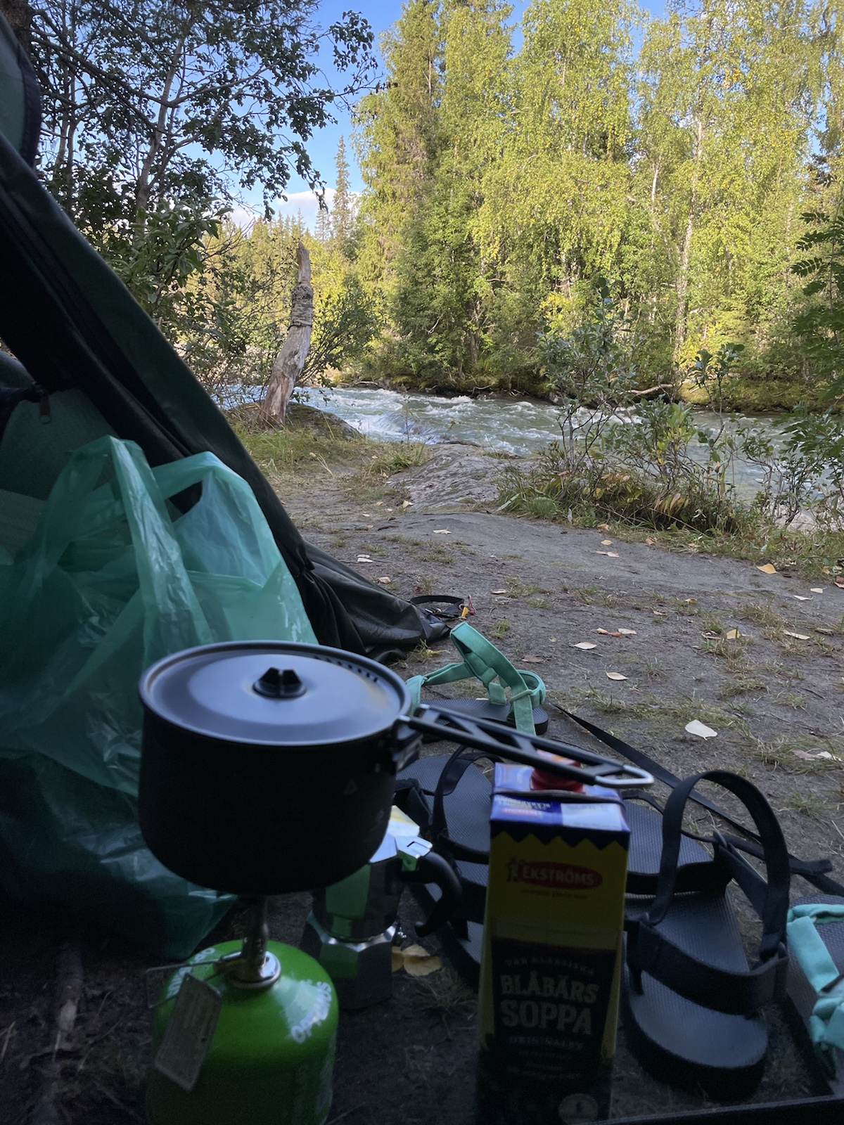Heute Morgen noch im Zelt. Blaubeersuppe und Kaffee zum Frühstück.Um 15.00 Uhr. Ein Viererzimmer nur für uns zwei. Ein Bett, sogar ohne Holzlatte am Fussende, wo Döös reinpasst. Bevor wir unser Zimmer beziehen konnten, trafen wir noch einmal auf das junge deutsche Paar, von dem die Frau mir das WLan Passwort gegeben hatte. Sie waren gen Süddn unterwegs und wir tauschten Erfahrungsberichte aus. Wir empfahlen ihnen den wunderschönen Zeltplatz am See vor Adolfström und sie informierten uns darüber, dass man die Plumpsklos der STF Hütten immer nutzen dürfe. Ausserdem gebe es jeweils am Eingang der Hütten gratis Saft. ÜIn Schweden sind irgendwie immer die Abflüsse offen und wenn das Wasser abfliesst, gibt es jedesmal eine kleine Überschwemmung. Das war bereits in Stockholm so, als ich das Badezimmer unter Wasser setzte, als ich das Badewasser ablaufen liess – der Badezimmerteppich war durchtränkt. Heute Waschtag mit Waschmaschine und ich bin begeistert.Wie gesagt, ich posiere nie für Fotos. Alles reiner Zufall. Auch Döös gefällts.Unsere heutigen Pläne.Fika (Kaffe und Zimtschnecke)Gefolgt von Pommes.Gefolgt von mehr Fika.Am Abend kochten wir in der Gemeinschaftsküche rote Linsen gemischt mit Gemüsesuppe und Spinat/Kohl-Suppe (von meiner Tante). Es war so gut. Wir haben dabei zwei Leute kennengelernt, eine Niederländerin und einen Israeli (Shay). Beide waren super nett und kamen von Norden her. Wir sprachen fast bis elf Uhr Abends miteinander, während die Lobby um ums herum immer leerer wurde, da Wanderer generell früh zu Bett gehen. Am Ende waren nur noch Shay und ich dort und redeten über Ungetecjtigkeiten der Welt, Systemprobleme und effektiven Altruismus. Die nächsten zwei Wandertage dachte ich weiter über unser Gespräch nach.