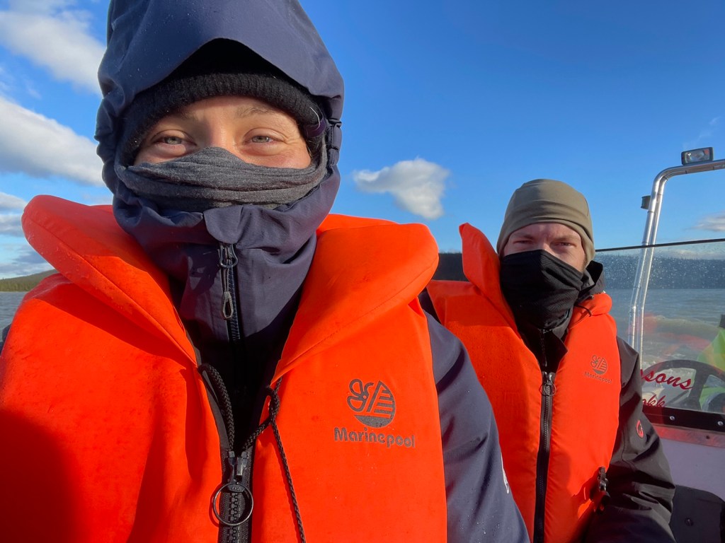 Von der vorangehenden Fahrt haben wir gelernt: Regenjacke und -hose auf jeden Fall anziehen. Ausserdem sonst noch alles was wärmt.Hier sieht man schon Skierfe (der Spitz). Endlich am Zeltplatz angekommen. Nach 19km noch 1km zu gehen zur Aktse Hütte. Dort haben wir vor der STF Hütte gezeltet (20 Franken pro Person pro Nacht, wir blieben zwei Nächte). gemeinsam mit etwa 15 weiteren Zelten und ungefähr 40 Leuten in der Hütte. Christian blieb im Zelt, ich besuchte die Sauna. Wir hatten immer noch Mühe mit den vielen Menschen, waren jedoch froh, unser Zelt einmal länger als eine Nacht stehen lassen zu können. Der entscheidende Vorteil war, dass die Hütte ein Shop hatte. Diese hatte aufgrund Saisonende „ausverkauf“. 2 Bier für 1. 2 Packungen gesalzene Erdbüsse für 1 und es gab sogar geriebenen Parmesan, welchen wir an beiden Abenden in unser Essen mischten. Luxus. In der Sauna lerne ich eine Schwedin, die im Berlin lebt und arbeitet sowie eine Schweizerin (erneut sus Lausanne) kennen. Sie erzählten mir, dass sie von der anderen Seite gekommen seien und in ein Schneegestöber gekommen seien. Nachdem wir bereits in der Nacht zuvor etwas gefröstelt hatten, wurde ich etwas nervös. Auf die folgenden Nächte war ich jedoch nicht vorbereitet.