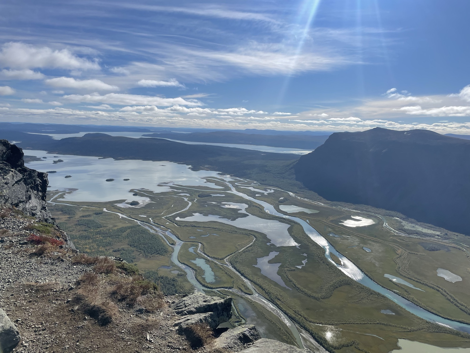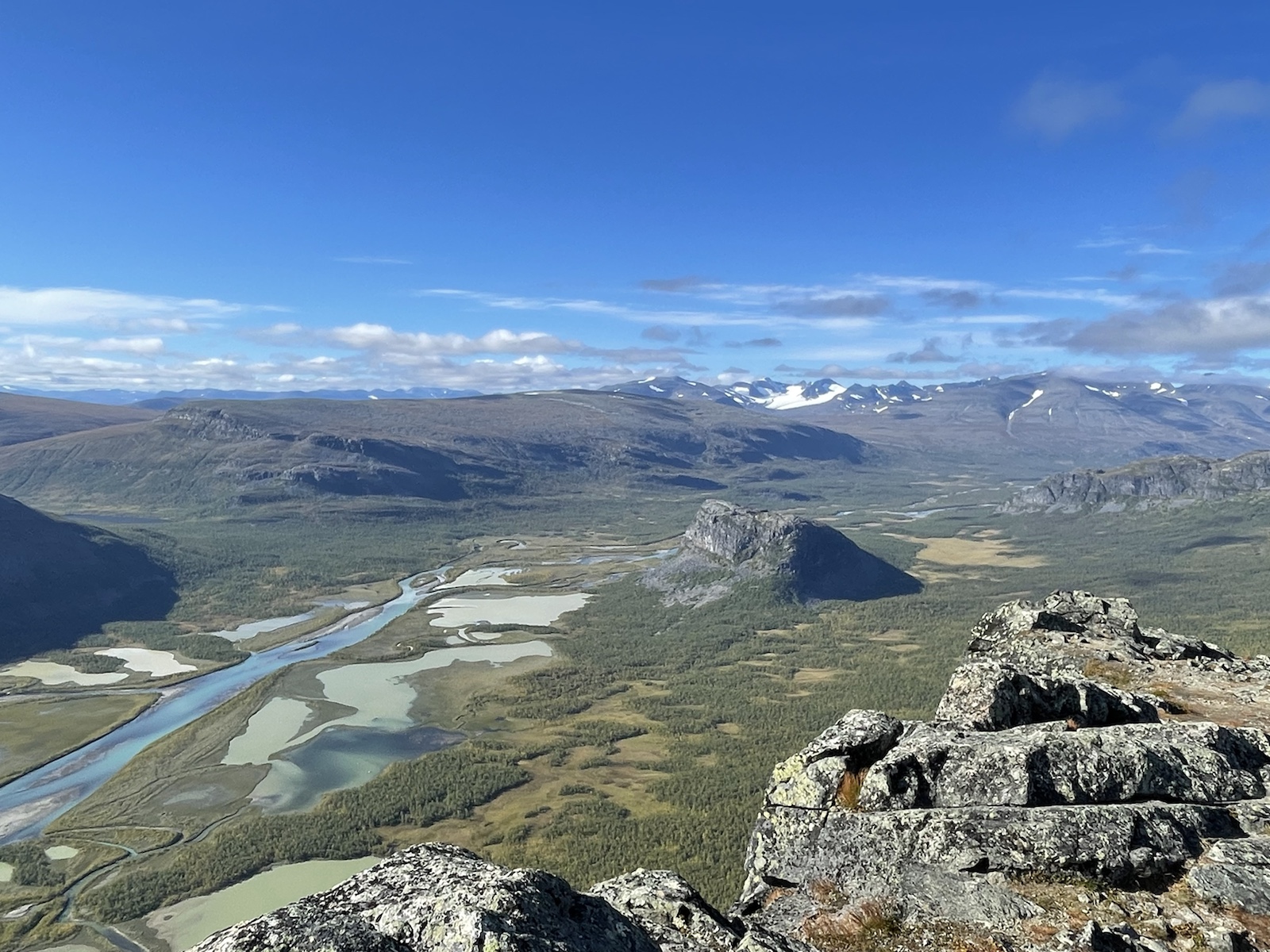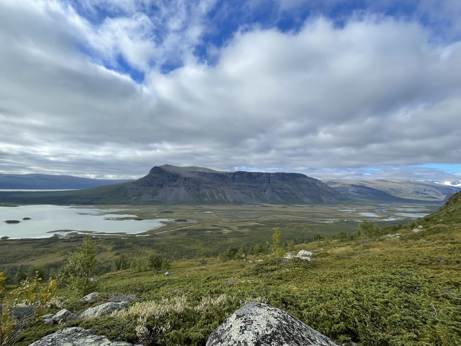 Nach einer frösteligen Nacht, gehen wir auf die zur Hütte gehörende Plumpsklos. Luxus. Dort hat es einen Thermometer. Um 9.00 Uhr 4 Grad Celsius, die Sonne scheint bereits, was hilft. Ausserdem ist die Tatsache, dass die Sonne heute scheint, besonders wichtig. Wir haben vor, den Kungsleden heute zu verlassen und einen Umweg nach Skierfe zu machen. Dieser wurde uns sowohl vom Internet, dem Reiseführer als auch sämtlichen uns aus dem Norden entgegenkommenden Personen empfohlen. Jedoch nur bei guter Witterung. Sonst sehe man nichts.Wir wandern mit leichtem Gepäck. Meines ist speziell leicht. Ich habe keines. Chrigi trägt ca 5kg. Ohne Rucksack merke ich, wie sich meine Ausdauer und meine Kraft verbrssert haben. Problemlos steigen wir auf diese Klippe. Über Geröll und steil bergauf. Herrlich. Hinten sieht man erneut den wunderschönen Sarek.Oben angekommen, bitten wir eine Schwedin, ein Foto von uns zu machen. Die Aussicht ist unglaublich.Als wir um ca. 15.00 Uhr beim Camping ankommen (und Bier kaufen, unter anderem, weil 2 für 1), ist es angenehm warm in der Sonne. Wir haben neben dem Bier noch drei verschiedene Schokoladensorten gekauft. Im Nachhinein hätte ich mehr kaufen müssen, weil zur zu späteren Zeitpunkten nur noch – wenn überhaupt – die Milchschokolade finden würden.Der Zeltplatz war am Nachmittag angenehm leer. Wir warteten angespannt auf das 5.00 Uhr Boot, welches viele Leute bringen könnte. Tatsächlich kamen noch einige Leute, jedoch weniger als am Vortag und kaum Zelter.Linseneintop mit 2 Päck geriebenem Parmesan und „Härdöpfelstock“-Pulver. Absolute empfehlung.