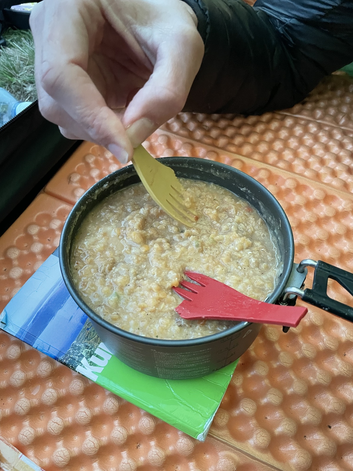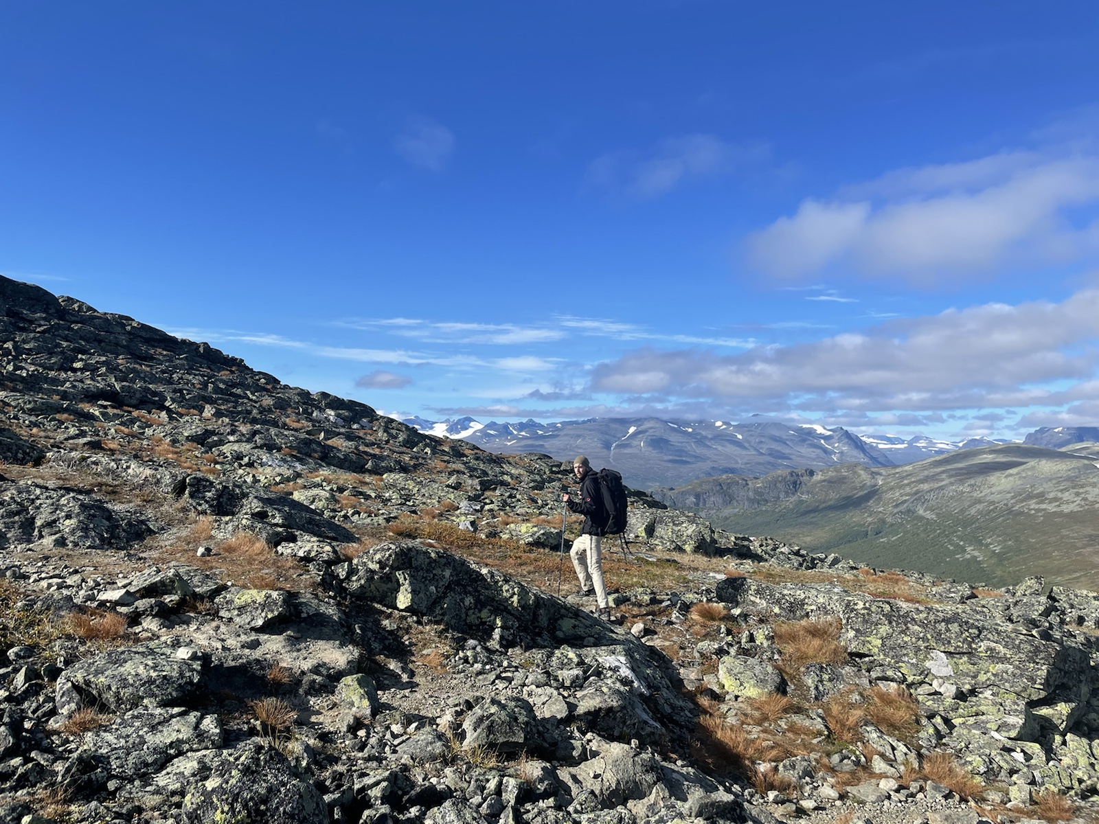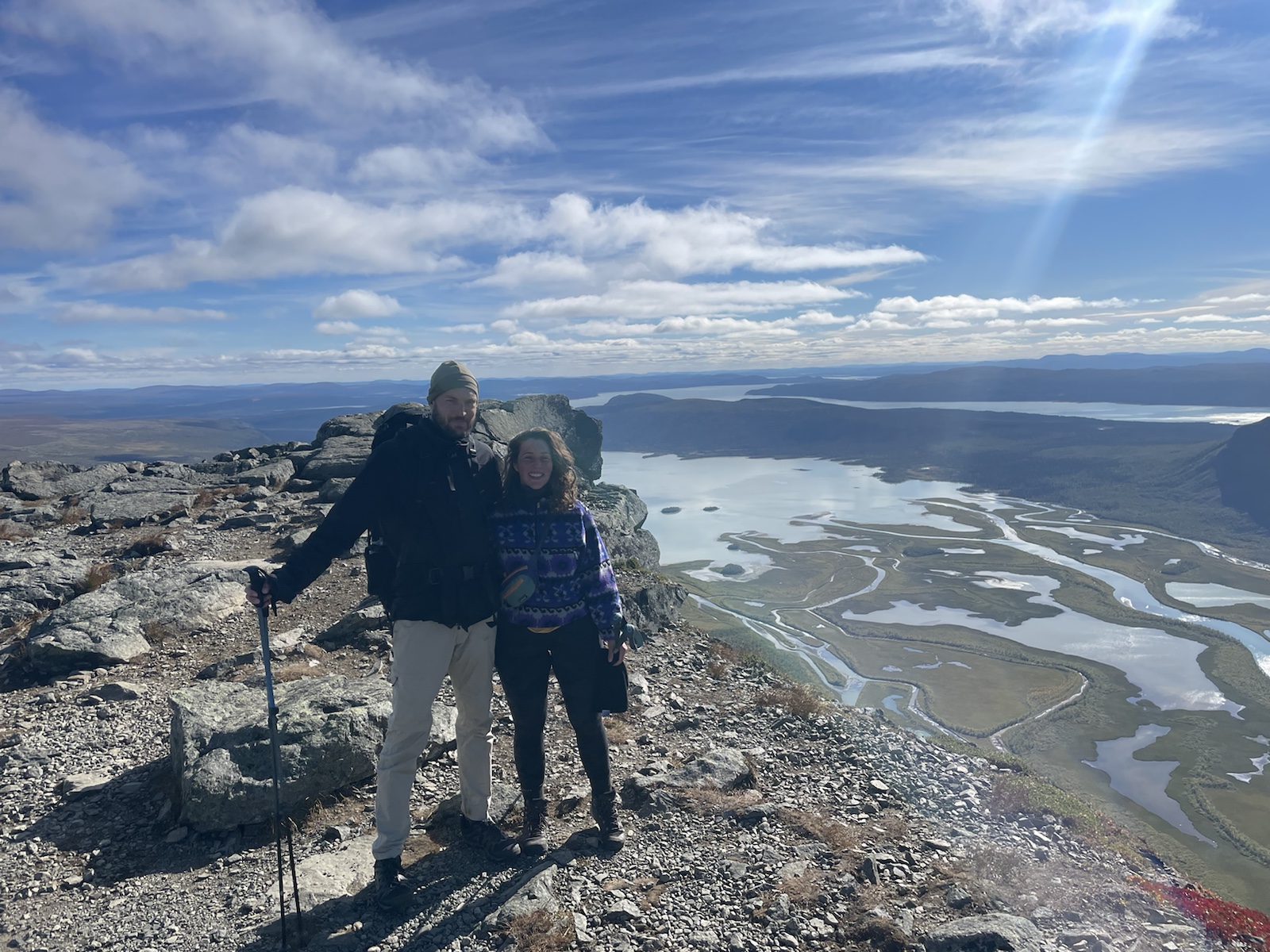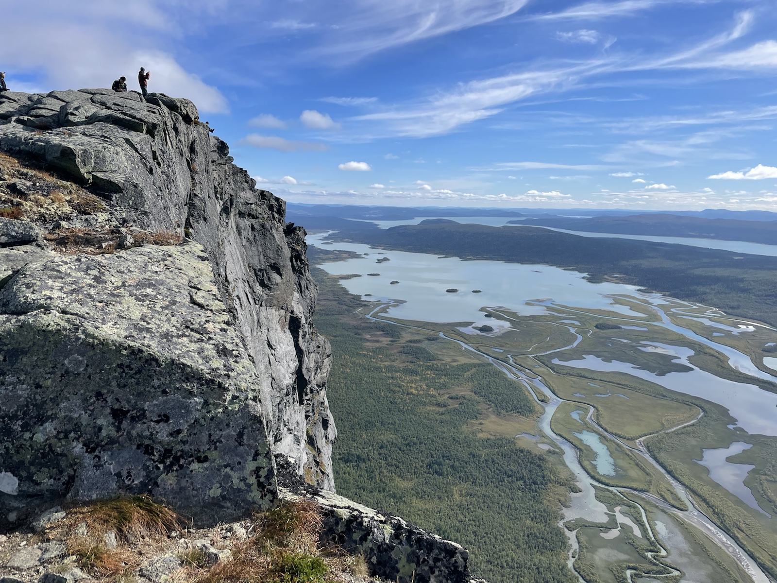 Nach einer frösteligen Nacht, gehen wir auf die zur Hütte gehörende Plumpsklos. Luxus. Dort hat es einen Thermometer. Um 9.00 Uhr 4 Grad Celsius, die Sonne scheint bereits, was hilft. Ausserdem ist die Tatsache, dass die Sonne heute scheint, besonders wichtig. Wir haben vor, den Kungsleden heute zu verlassen und einen Umweg nach Skierfe zu machen. Dieser wurde uns sowohl vom Internet, dem Reiseführer als auch sämtlichen uns aus dem Norden entgegenkommenden Personen empfohlen. Jedoch nur bei guter Witterung. Sonst sehe man nichts.Wir wandern mit leichtem Gepäck. Meines ist speziell leicht. Ich habe keines. Chrigi trägt ca 5kg. Ohne Rucksack merke ich, wie sich meine Ausdauer und meine Kraft verbrssert haben. Problemlos steigen wir auf diese Klippe. Über Geröll und steil bergauf. Herrlich. Hinten sieht man erneut den wunderschönen Sarek.Oben angekommen, bitten wir eine Schwedin, ein Foto von uns zu machen. Die Aussicht ist unglaublich.Als wir um ca. 15.00 Uhr beim Camping ankommen (und Bier kaufen, unter anderem, weil 2 für 1), ist es angenehm warm in der Sonne. Wir haben neben dem Bier noch drei verschiedene Schokoladensorten gekauft. Im Nachhinein hätte ich mehr kaufen müssen, weil zur zu späteren Zeitpunkten nur noch – wenn überhaupt – die Milchschokolade finden würden.Der Zeltplatz war am Nachmittag angenehm leer. Wir warteten angespannt auf das 5.00 Uhr Boot, welches viele Leute bringen könnte. Tatsächlich kamen noch einige Leute, jedoch weniger als am Vortag und kaum Zelter.Linseneintop mit 2 Päck geriebenem Parmesan und „Härdöpfelstock“-Pulver. Absolute empfehlung.
