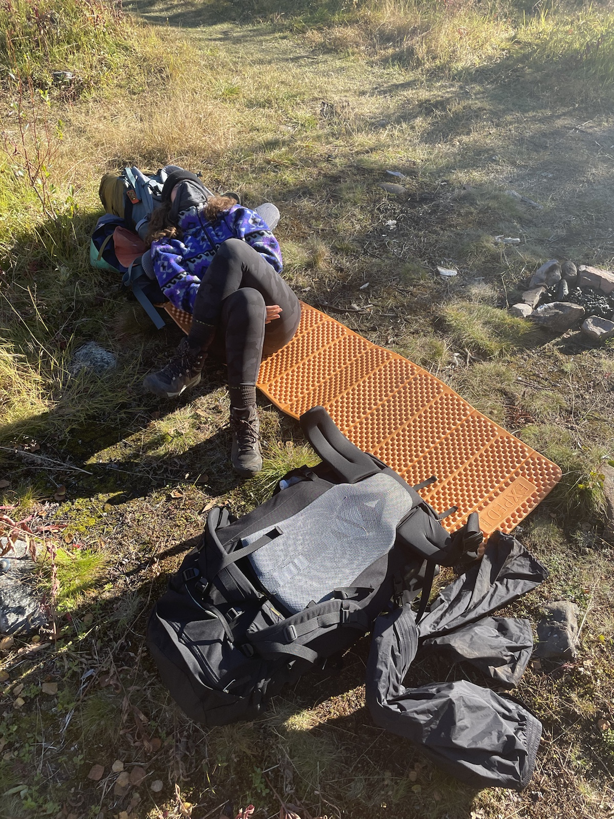 Wir legten uns hin und nahmen unseren Znacht im Schlafsack liegend ein. Sobald die Sonne untergeht, wird es nämlich schnell kalt, weshalb wir uns immer in unsere Schlafsäcke verkriechen. um 20.00 Uhr wollten wir uns nach dem Essen etwas ausruhen und etwas aufwärmen – un schliefen prompt ein.