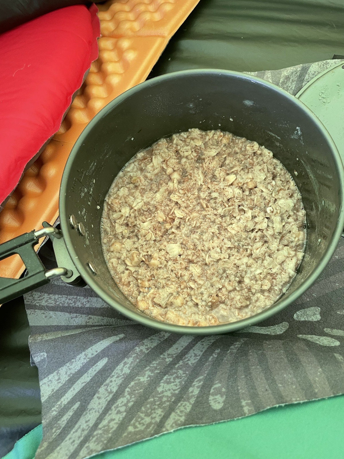 Am Abend leerte noch unser Salz im Dry Pack aus. Chrigi ging mutig in die Kälte, um ihn zurückzuleeren, während ich dies aus der sicheren Wärme des Schlafsacks heraus dokumentierte.