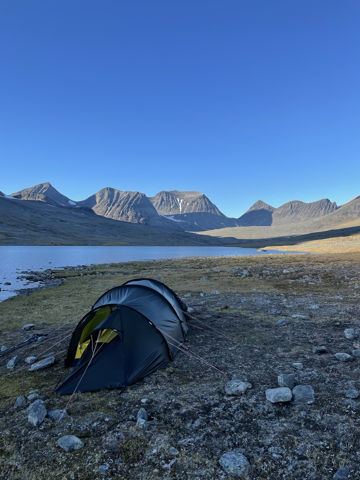 An einem schönen Bergsee stellten wir schliesslich unser Zelt auf. Während wir es aufstellten, schien noch die Sonne drauf und es war drinnen angenehm war. Auf der anderen Seite des Sees entdeckten wir ein weiteres Zelt, welches im Schatten aufgebaut worden war, was wir beide nicht nachvollziehen konnten.