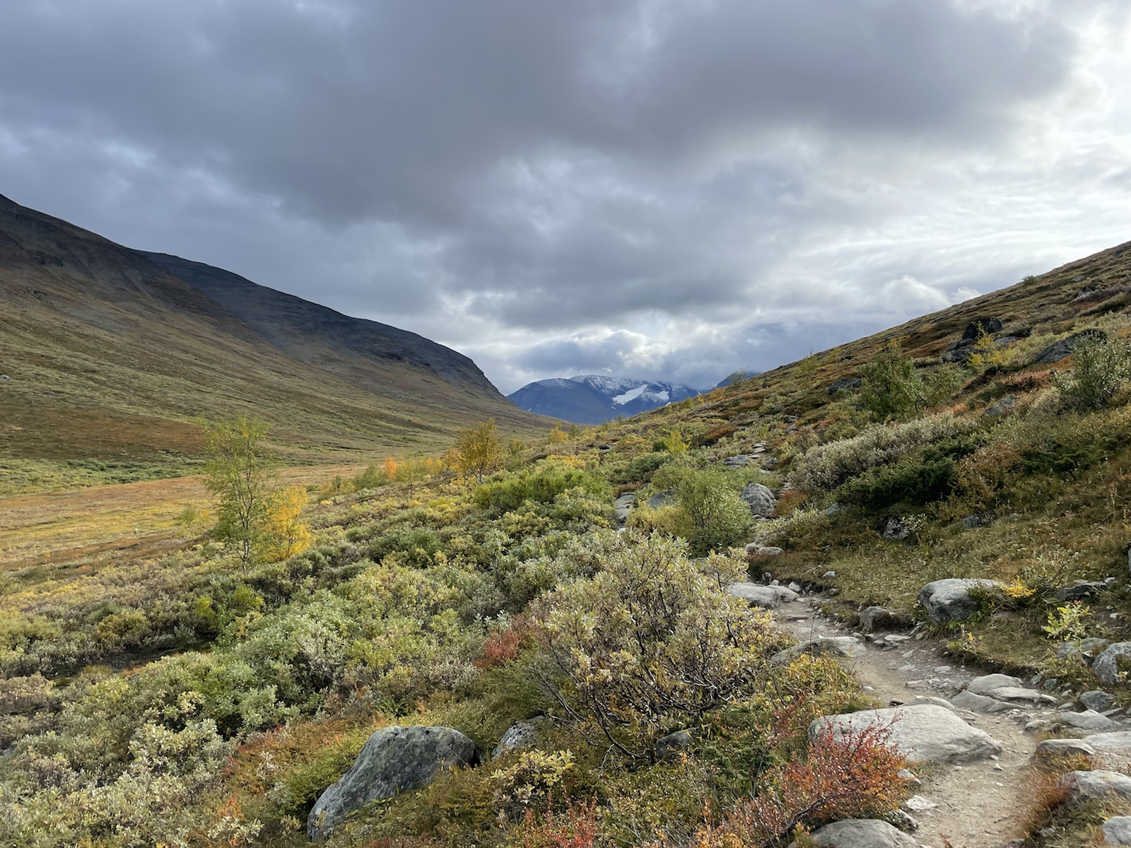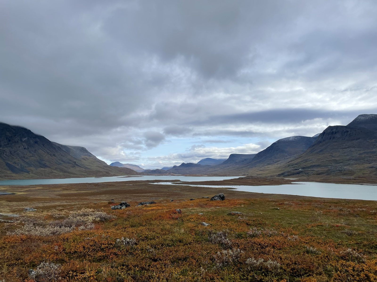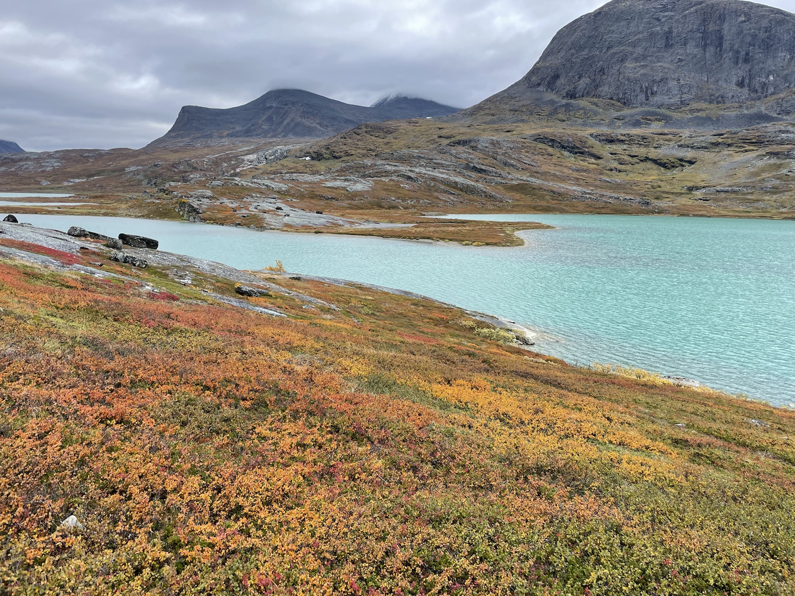 Nach einer kühlen Nacht, wachen wir in einem freuchtem Zelt und bewölktem Himmel auf. Wissend, dass das Zelt so nicht trocknen wird, beschliessen wir zu packen und loszugehen. Meine Lunge schmerzt nicht mehr, ich huste aber noch und ich fühle mich schwach. Im Gegensatz zum gestrigen Tag passt das Wetter wenigsten zu meiner Verfassung. Ich habe keine Motivation.