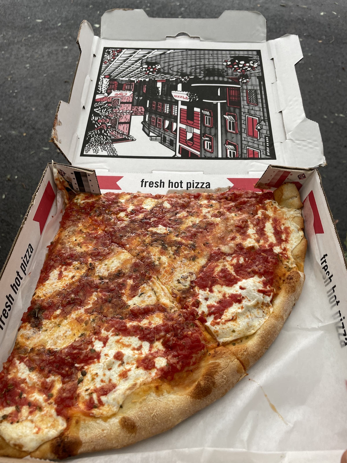 Am zweiten Tag hat uns der Rand des Hurricanes Ian. Lustigerweise hatten wir, als wir 11 Jahre zuvor im August in NYC waren auch einen Hurrican, nur traf dieser direkt auf Manhatten und die ganze Stadt ging in Lockdown (Metro geschlossen, Holzplanken vor den Schaufenstern, menschenleere Strassen, das ganze Programm). Dieses Mal war es nur starker Wind und Regen.In strömendem, fast waagrechten Regen gingen wir nach Draussen.Wetterbedingt hatten wir am Vorabend entschlossen , ins Kino zu gehen. Um 11.45 Uhr gab es ein „Brunch Kino“ vom Film Bros (Empfehlung). Ich hatte French Toast, Chrigi einen Burger mit Pommes. Ausserdem teilten wir eine Mimosa (generelle Empfehlung jederzeit).Nach dem Film spazierten wir durch Brooklyn. Herrlich.Die Erschöpfung vom JetLag.Wir waren nicjt lange unterwegs, da wir irgendwie erschöpft waren.Nicht so gut wie L‘idustrie, aber solid. Weiter oben gab es eine Pizzeria mit einer Menschenschlange. Dort konnte man jedoch nur ganze Pizzas kaufen. Weil wir unsere F*ck that‘s delicious Tour weitermachen und Hans Dynasty zum Znacht essen wollten, konnten wir keine ganze Pizza nehmen.Kriege ich jemals genug Trader Joe‘s. Nein. Definitiv nicht.Es sieht nuch ansehnlich aus, war aber gut. Han‘s Dynasty (eine Kette): Empfehlung.