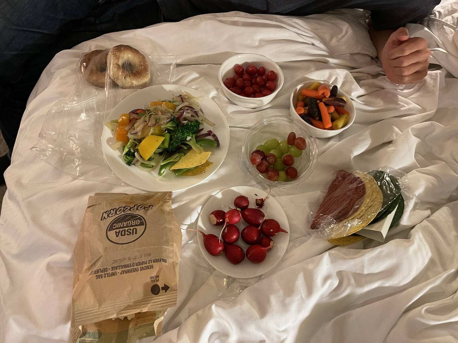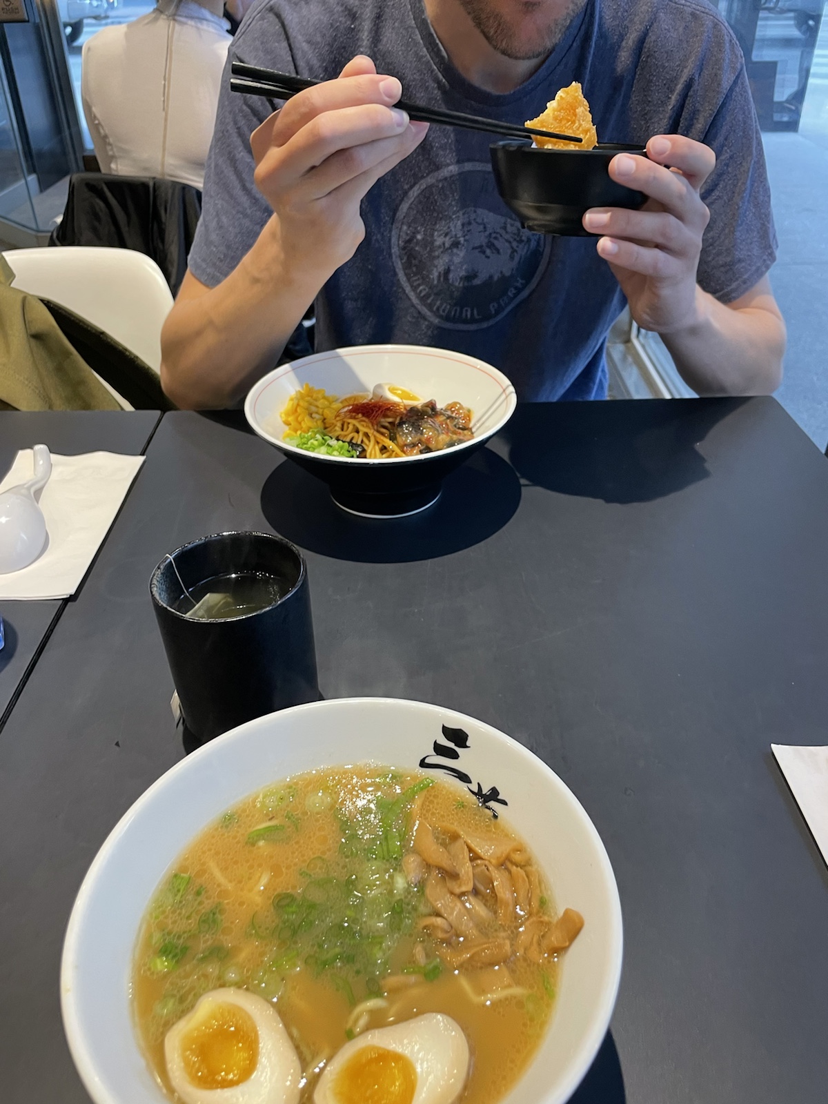 Sicht aus dem HotelzimmerEndlich habe ich den Tigertee gefunden (von dem ich viel zu ausführlich in einem der Wanderbeiträge erzählt habe). Am Morgen brachten wir unsere Wäsche in einen Waschsslon (Fr. 20.- für wash and fold), da unser Hotel kein Wäscheraum hatte. Meine zwei Persönlichkeiten.Hier das frittierte Mochi mit Kürbiscrème-Füllung. Chrigi wollte etwas aus einer Bäckerei. Lange fanden wir keine. Irgendwann ging ich in einen Laden, in dem ich Toastbrot sah. Sie hatten nur dieses Brot, empfahlen uns aber eine Bäckerei und erklärten uns, wo diese war. Chrigi kaufte darin ein Buttercroissant und ein Pain au Chocolat..… welche er in einem nahe gelegenen Park ass. ich probierte das Croissant, welches wirklich gut war.Dann schauten wir uns die Graffiti Alley an.Am Abend kamen wir unterwegs zu einem Supermarkt an einer Statue vorbei…… welche wir vor elf Jahren bereits in NYC angetroffen hatten.Hotelznacht inkl. Mikrowellenpopcorn und gebratenem Gemüse (unser Zimmer hatte Herdplatten).