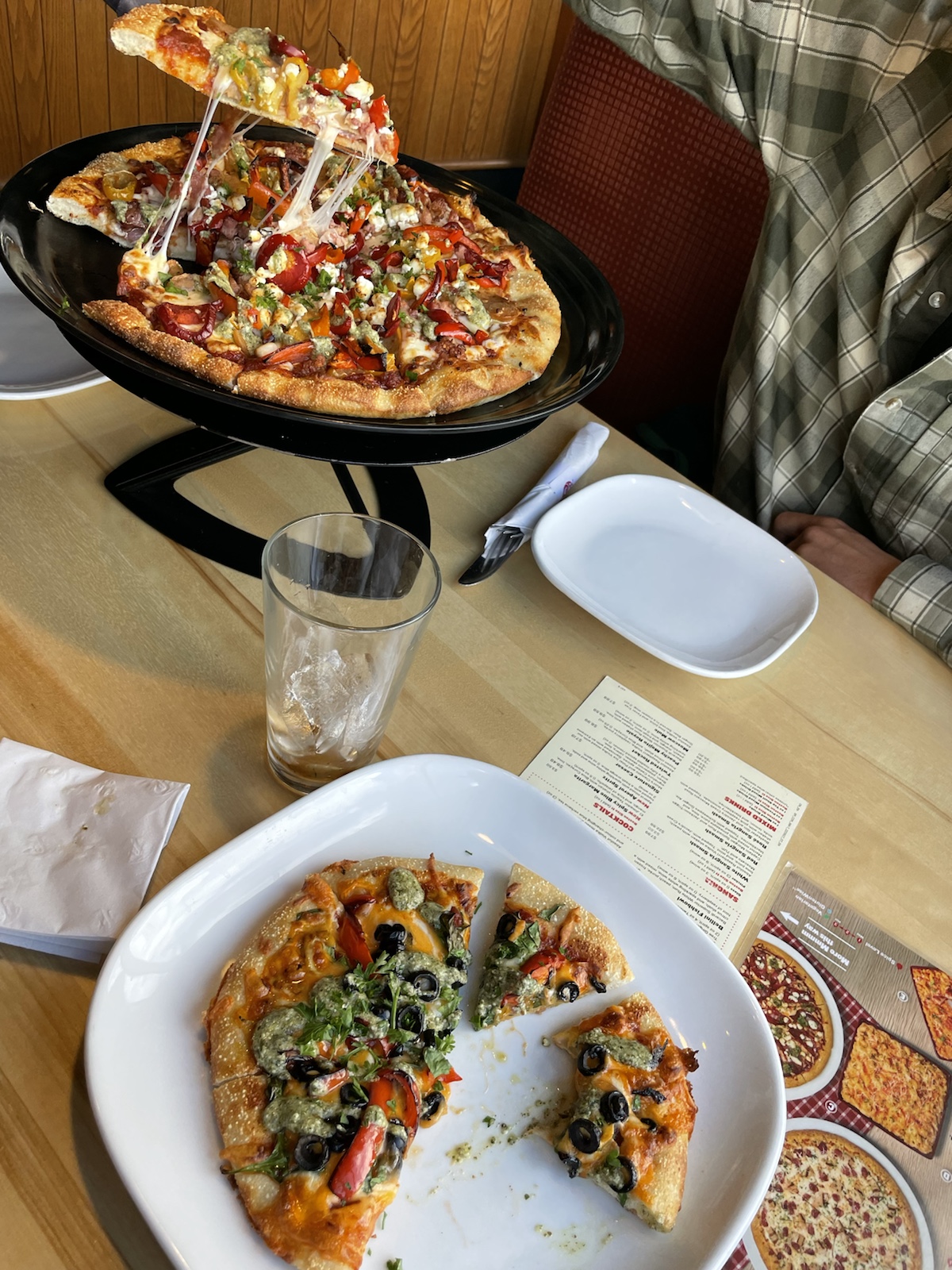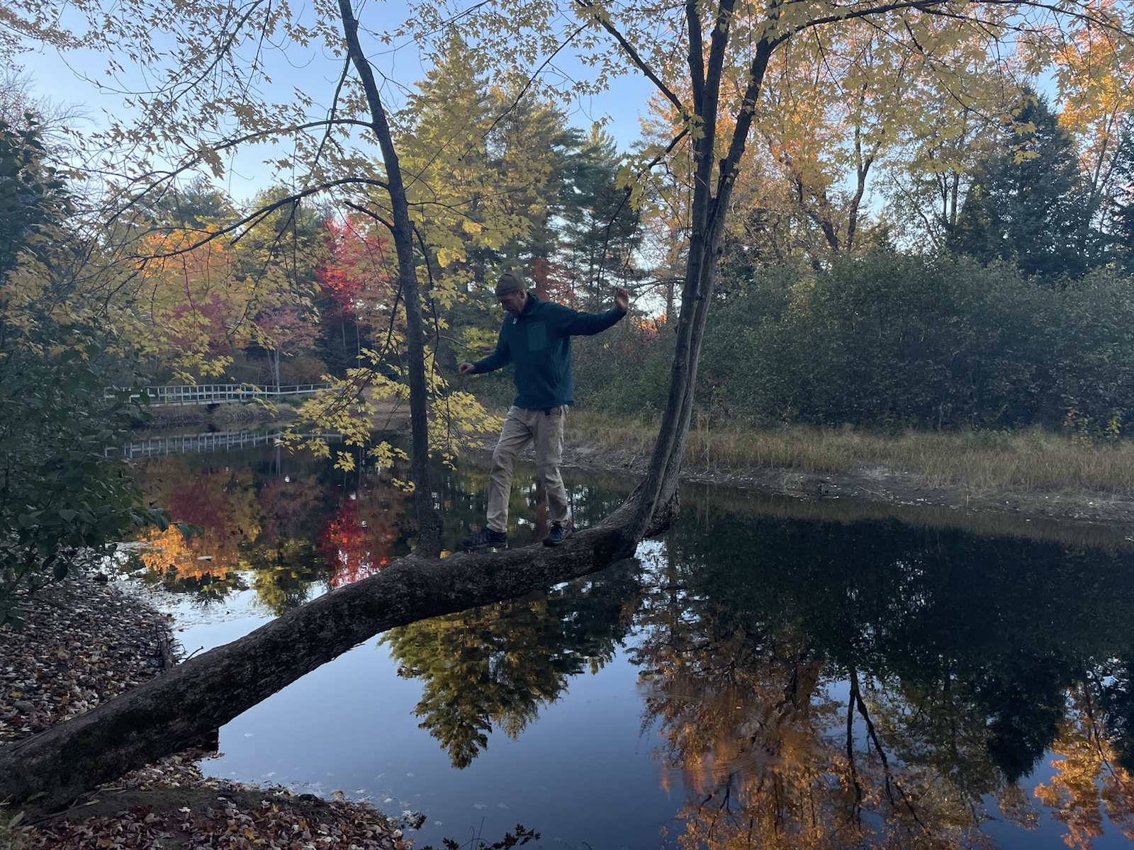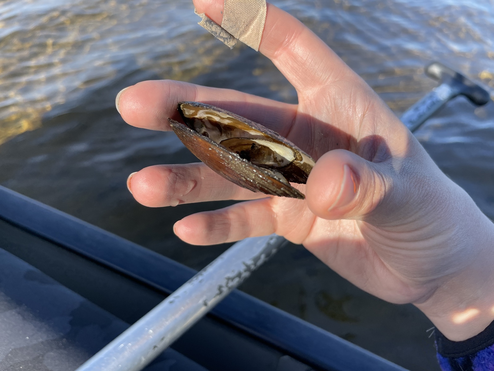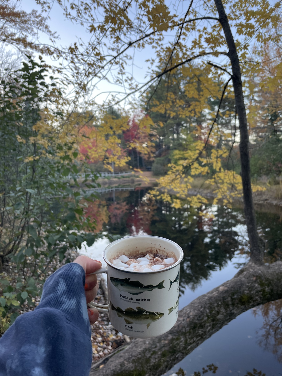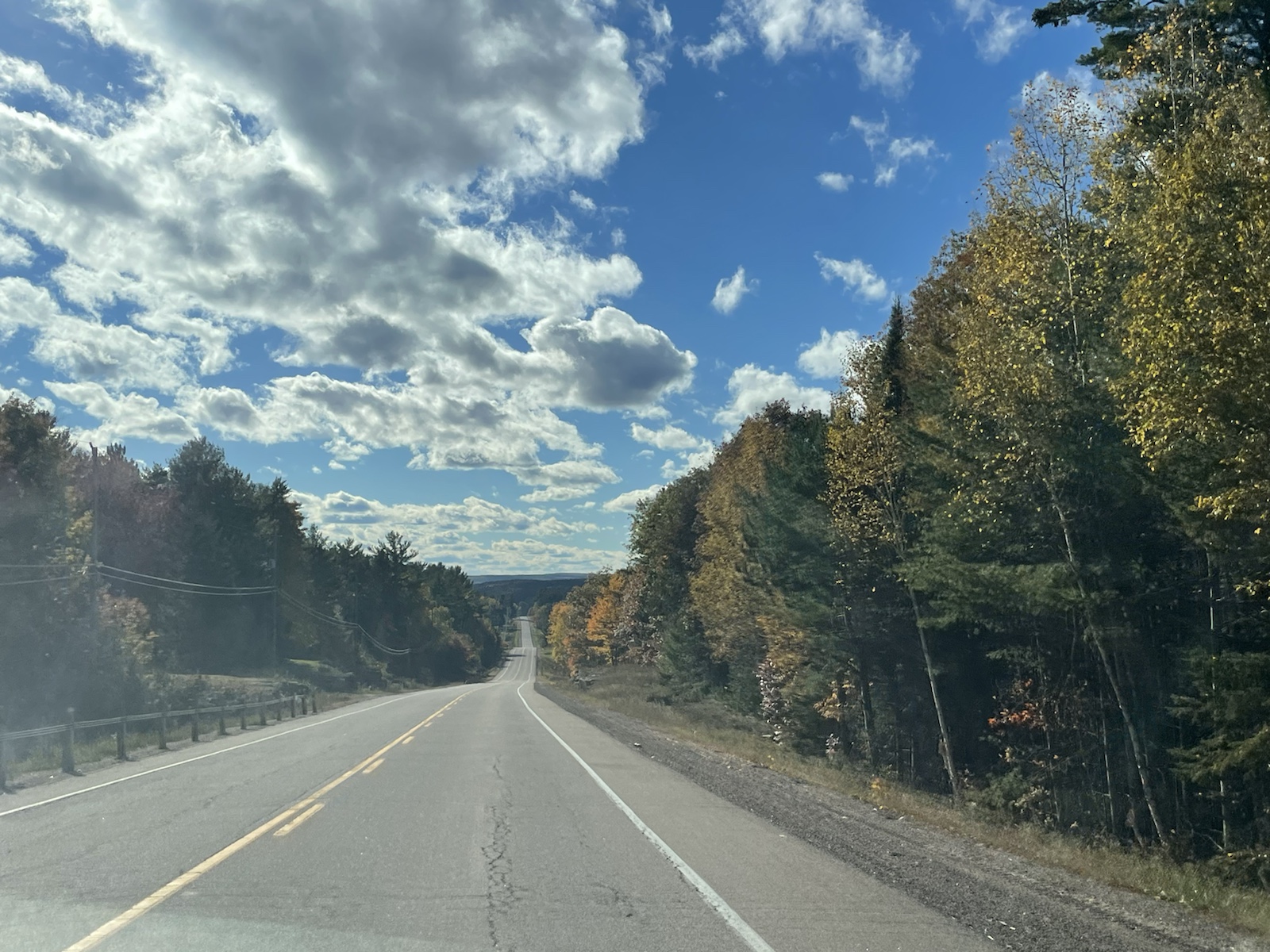 Unterwegs zum Bonnechere Provincial Park. In einem Supermarkt kauften wir erneut ein bischen frisches Gemüse und Früchte ein.Neben dem Supermarkt sahen wir einen Pizzaladen. Ich wollte, da hungrig, ein Slice Pizza kaufen, wie in NYC. Als wir den Laden betrate realisierten wir, dass es ein Restaurant war und wurden an einen Tisch gewiesen. Es hatte nur ganze Pizzen. Ich nahm die kleinste und Chrigi eine Medium (er hatte für den Rest des Tages keinen Hunger mehr, da seine Pizza mit Fleisch und Beilagen überladen war).Wir fuhren unterwegs an einem pittoresken kleinen Städtchen vorbei, in dem leider – da Thankgsgiving war – alle Läden geschlossen und die Strassen menschenleer waren.Wie immer kamen wir auch hier erst kurz vor Sonnenuntergang an (was jedoch, da die Sonne um 18.15 Uhr untergeht, nicht erstaundlich ist). Wunderschöner Platz an einem kleinen Fluss, der kurz weiter vorne in einen See fliesst.An diesem Abend ging der Vollmond orange und riesig auf.Der nächste Morgen war kühl, jedoch hatte es endlich keinen Wind mehr, weshalb wir endlich Kanufahren konnten. Etwas wovon ich seit wir entschieden hatten, nach Kanada zu gehen, geträumt hatte.Am morgen paddelten wir den Fluss entgegen der Strömung nach oben. Dort sah ich plötzlich, wie ein Ast in einer eigenartigen Geschwindigkeit die Strömung hinunterfloss. Ich fragte mich, ob die Strömung weiter vorne zunehmen würde, bis ich etwas braunes vorne am Ast entdeckte. Zuerst ein Panikmoment: Bär?? Es war jedoch ein Biber, der mit einem Ast im Mund an und vorbeischwamm. Was für ein Glück. Es war das erste man für uns beide, einen Biber zu sehen.Es ist etwas verschaukelt, da wir auf dem Kanu waren und ich auch nicht aufs Video, sondern auf den Biber schaute.Am Nachmittag begaben wir uns nach einer kurzen Mittagspause auf den See, wo wir zum ersten Mal seit Tagen warm hatten. Bei der Mündung zum See sagte Chrigi plötzlich Marie lueg. Ich schaute auf die Seite und sah zwei Waschbären am linken Mündungsufer entlanggehen. Wir konnten es beide nicht glauben, an einem Tag ein solches Glück zu haben und zwei Tierarten zu sehen.Man sieht sie nicht so gut und es ist etwas verschaukelt. Auf dem Video sehen sie etwas weiter entfehrnt aus, als in der Realität. Es war spektakulär.Der See war eigenartig, es war bis fast in die Mitte sehr seicht (zum Teil nur einen halben Meter tief) und sandig.Obligate heisse Schoggi.Diese Nacht war sehr kalt. Wir haben es beidi am Abend vor dem zu Bett gehen gemerkt, jedoch nicht in der Nacht. Am Morgen jedoch (als wir bei Minusgraden erwachten, hatte es Raureif).Es war zwar kalt (ich habe mit Habdschuhen das Frühstück vorbereitet), dafür hatte es leichten Nebel auf dem Wasser.Nach diesem Foto war mein Akku leer.Den wir später auf dem Weg nach Ottawa in einem Tim Hortons aufladeten.