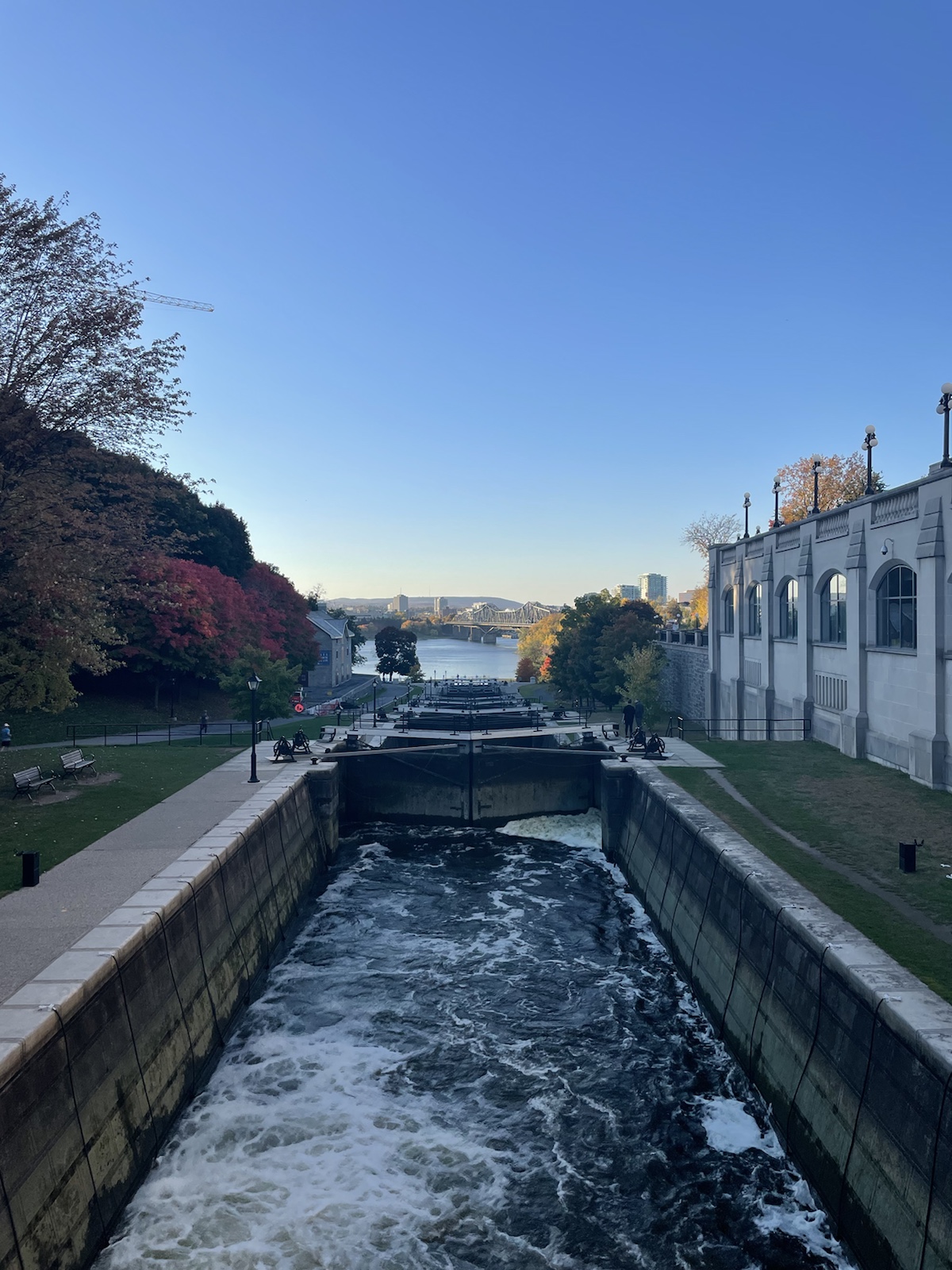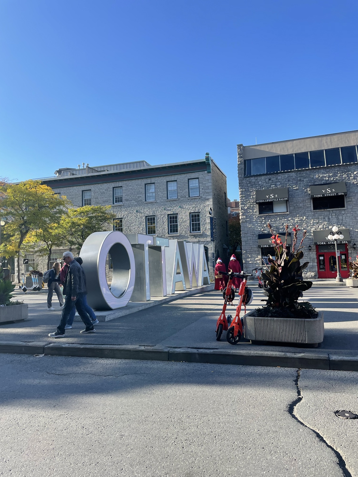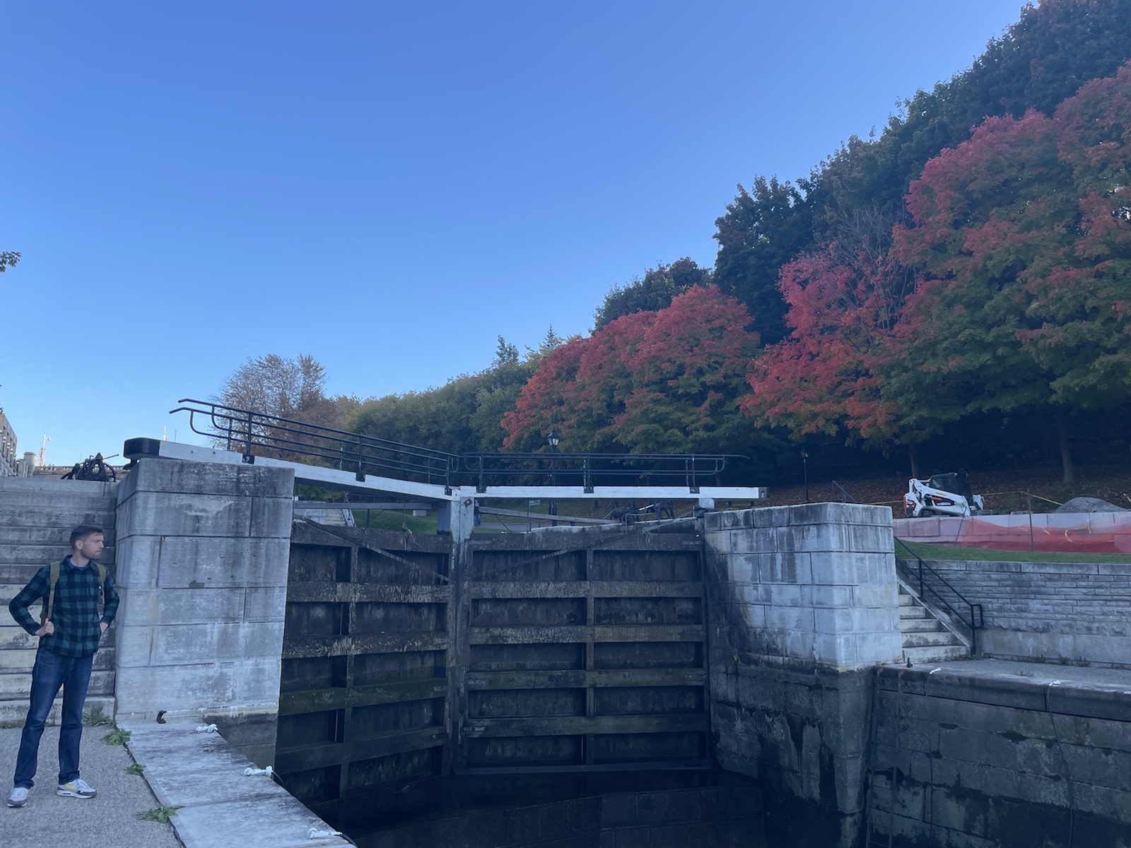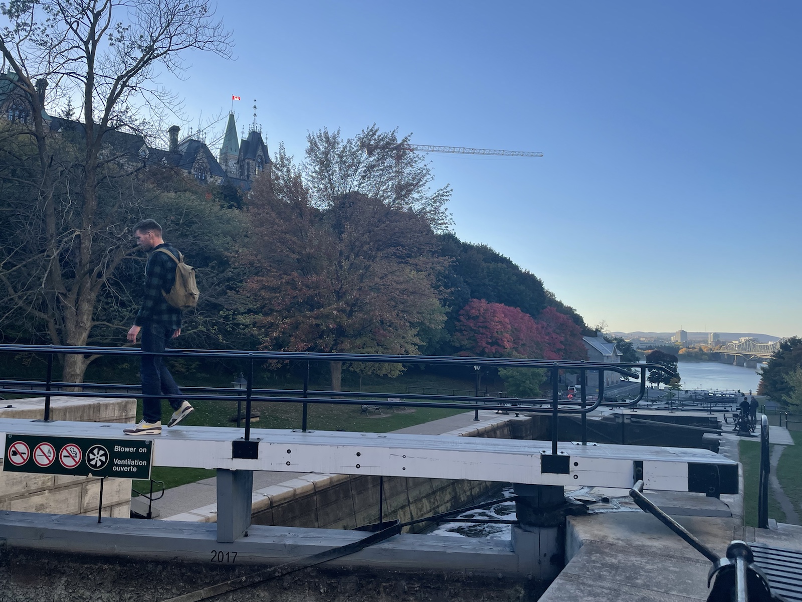 Unterwegs nach Ottawa. Bei gutem Wetter. Während wir in Ottawa waren, war gutes warmes Wetter, während wir zuvor beim Zelten wechselhaftes kühles Wetter hatten – und nach Ottawa erneut haben würden. Neben unserem Hotel war ein Baseball-Stadion.Natürlich musste ich mich beherrschen, die Farbe nicht zu berühren. Unser Hotel war etwas ausserhalb, jedoch nur ca. 10 Minuten zu Fuss von der Metro entfehrnt, welche nur knapp 20 Minuten in die Innenstadt hatte.Chrigi entschloss die Treppe von der Metro nach oben zu gehen. Von unten hatte man jedoch nicht gesehen, wie lange die Treppe war. Ein unerwartetes Workout für ihn.Pourine Snack.Unterwegs trafen wir auf ein Fotoshooting, wo zwei Personen wie die Frauen in Handmaids Tale verkleidet waren. Creepy.Eigenartige silbrige Kirchtürme im Huntergrund, welche wir im weiteren Verlauf der Reise noch eln paarmal antreffen würden. Vorne ist ein Museum (of modern Art?).Mein Fuss war noch nicht okay. Ich musste ständig Pausen machen und sagte Chrigi schliesslich, er müsse allein über die Brücke, während ich auf einem Bänkli auf ihn warten würde.Weshalb ich diese Aussichten verpasst habe.Auch den Zen Garten kenne ich nur vom Foto. Dafür wartete ich in der Sonne un freundete mich mit einer Biene an.Das Parlament (glaube ich?).Ottawa war unerwartet schön. Wir hatten auch das Glück, die Sehenswürdigkeiten nur mit wenigen anderen Touristen teilen zu müssen. Ebenfalls war das Wetter auf unserer Seite.10/10 Empfehlung für Ottawa.Am Abend war Wäsche- und NBA-Pre-Season-Zeit. (Ebenfalls konnte man am Empfang unmimitiert heisses Wasser und Filterkaffee holen, weshalb ich hier heisses Wasser für die heisse Schoggi hole). Wir waren beide ziemlich erschöpft und mein Fuss reklamierte, weshalb wir nicht mehr Einkaufen gingen. Wir versuchten Essen zu bestellen, jedoch akzeptierte das kanadische Eat.ch (Skip) unsere Kreditkarte nicht. Unser Znacht bestand deshalb aus Camping-Resten: 2 Äpfel, heisse Schoggi, Tortilla Chips und Mikrowellen Popcorn.