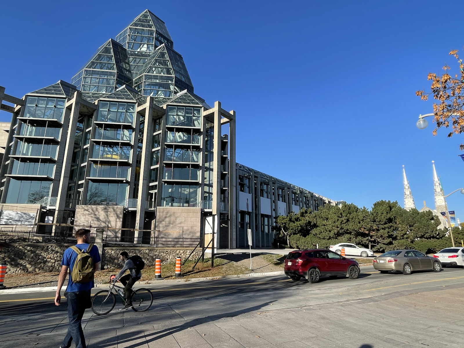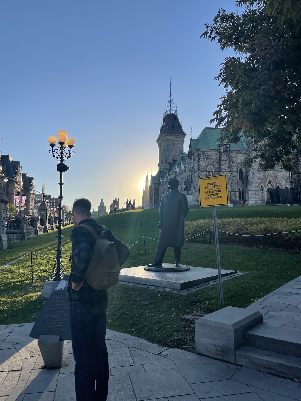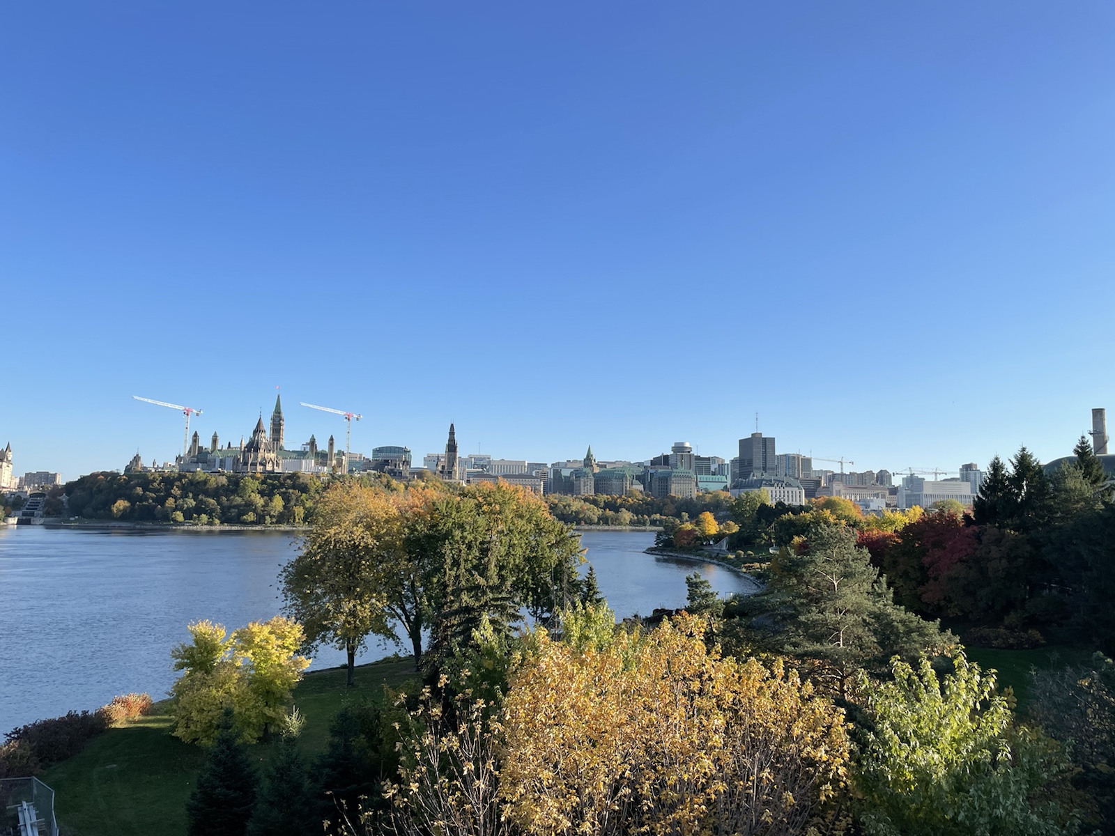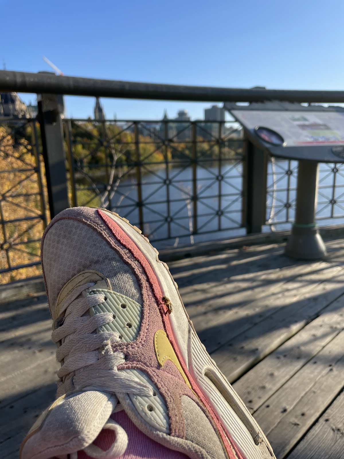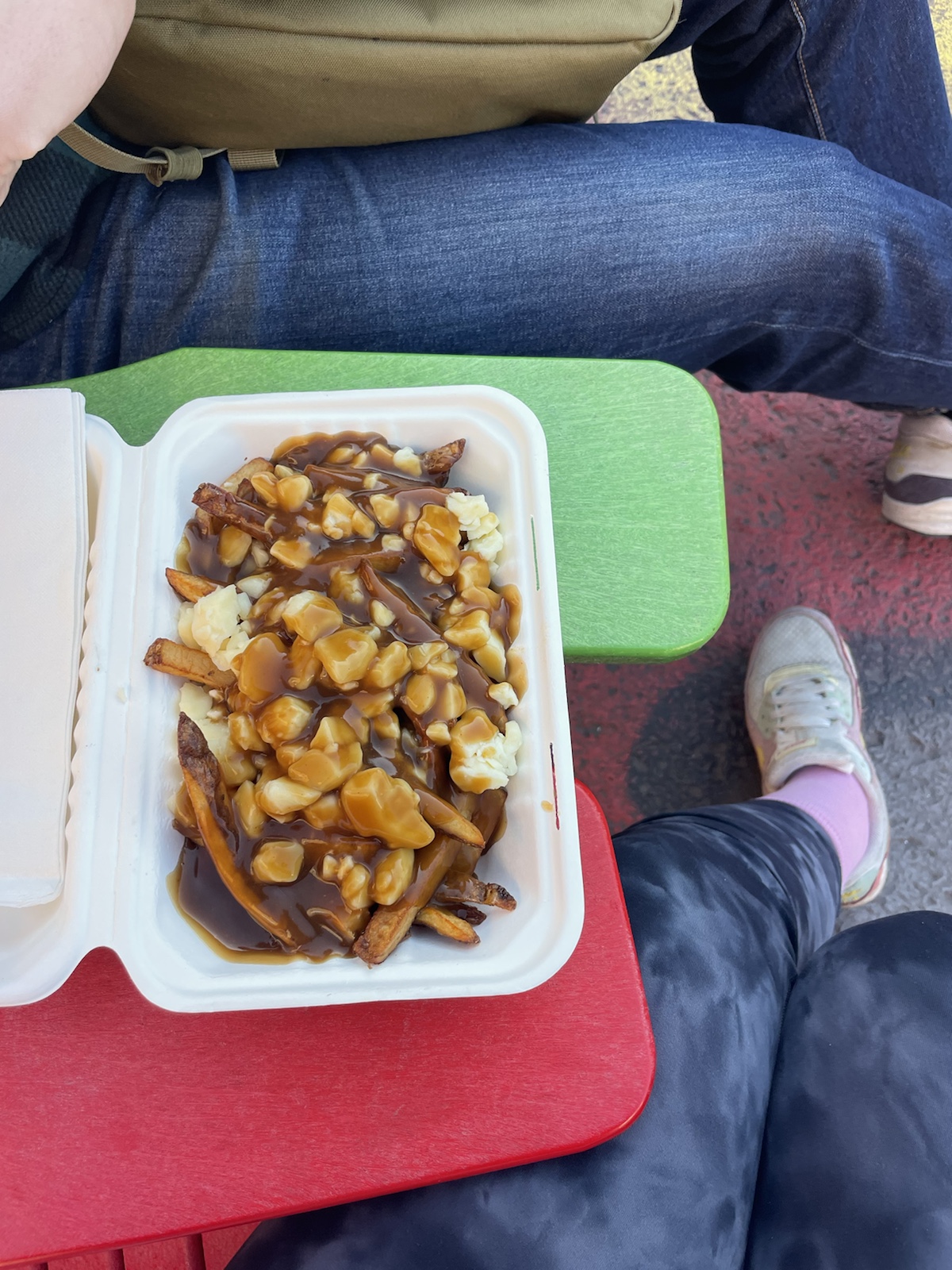 Unterwegs nach Ottawa. Bei gutem Wetter. Während wir in Ottawa waren, war gutes warmes Wetter, während wir zuvor beim Zelten wechselhaftes kühles Wetter hatten – und nach Ottawa erneut haben würden. Neben unserem Hotel war ein Baseball-Stadion.Natürlich musste ich mich beherrschen, die Farbe nicht zu berühren. Unser Hotel war etwas ausserhalb, jedoch nur ca. 10 Minuten zu Fuss von der Metro entfehrnt, welche nur knapp 20 Minuten in die Innenstadt hatte.Chrigi entschloss die Treppe von der Metro nach oben zu gehen. Von unten hatte man jedoch nicht gesehen, wie lange die Treppe war. Ein unerwartetes Workout für ihn.Pourine Snack.Unterwegs trafen wir auf ein Fotoshooting, wo zwei Personen wie die Frauen in Handmaids Tale verkleidet waren. Creepy.Eigenartige silbrige Kirchtürme im Huntergrund, welche wir im weiteren Verlauf der Reise noch eln paarmal antreffen würden. Vorne ist ein Museum (of modern Art?).Mein Fuss war noch nicht okay. Ich musste ständig Pausen machen und sagte Chrigi schliesslich, er müsse allein über die Brücke, während ich auf einem Bänkli auf ihn warten würde.Weshalb ich diese Aussichten verpasst habe.Auch den Zen Garten kenne ich nur vom Foto. Dafür wartete ich in der Sonne un freundete mich mit einer Biene an.Das Parlament (glaube ich?).Ottawa war unerwartet schön. Wir hatten auch das Glück, die Sehenswürdigkeiten nur mit wenigen anderen Touristen teilen zu müssen. Ebenfalls war das Wetter auf unserer Seite.10/10 Empfehlung für Ottawa.Am Abend war Wäsche- und NBA-Pre-Season-Zeit. (Ebenfalls konnte man am Empfang unmimitiert heisses Wasser und Filterkaffee holen, weshalb ich hier heisses Wasser für die heisse Schoggi hole). Wir waren beide ziemlich erschöpft und mein Fuss reklamierte, weshalb wir nicht mehr Einkaufen gingen. Wir versuchten Essen zu bestellen, jedoch akzeptierte das kanadische Eat.ch (Skip) unsere Kreditkarte nicht. Unser Znacht bestand deshalb aus Camping-Resten: 2 Äpfel, heisse Schoggi, Tortilla Chips und Mikrowellen Popcorn.