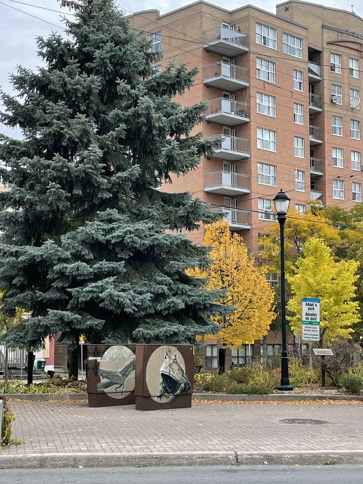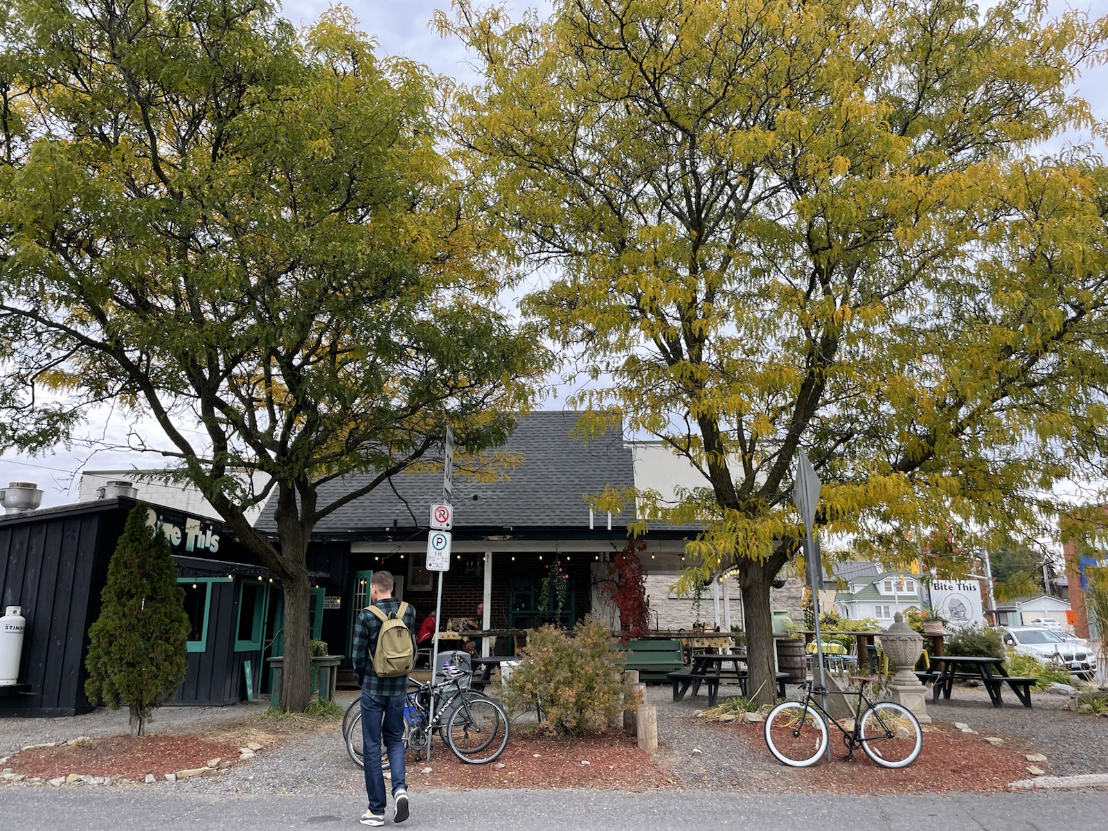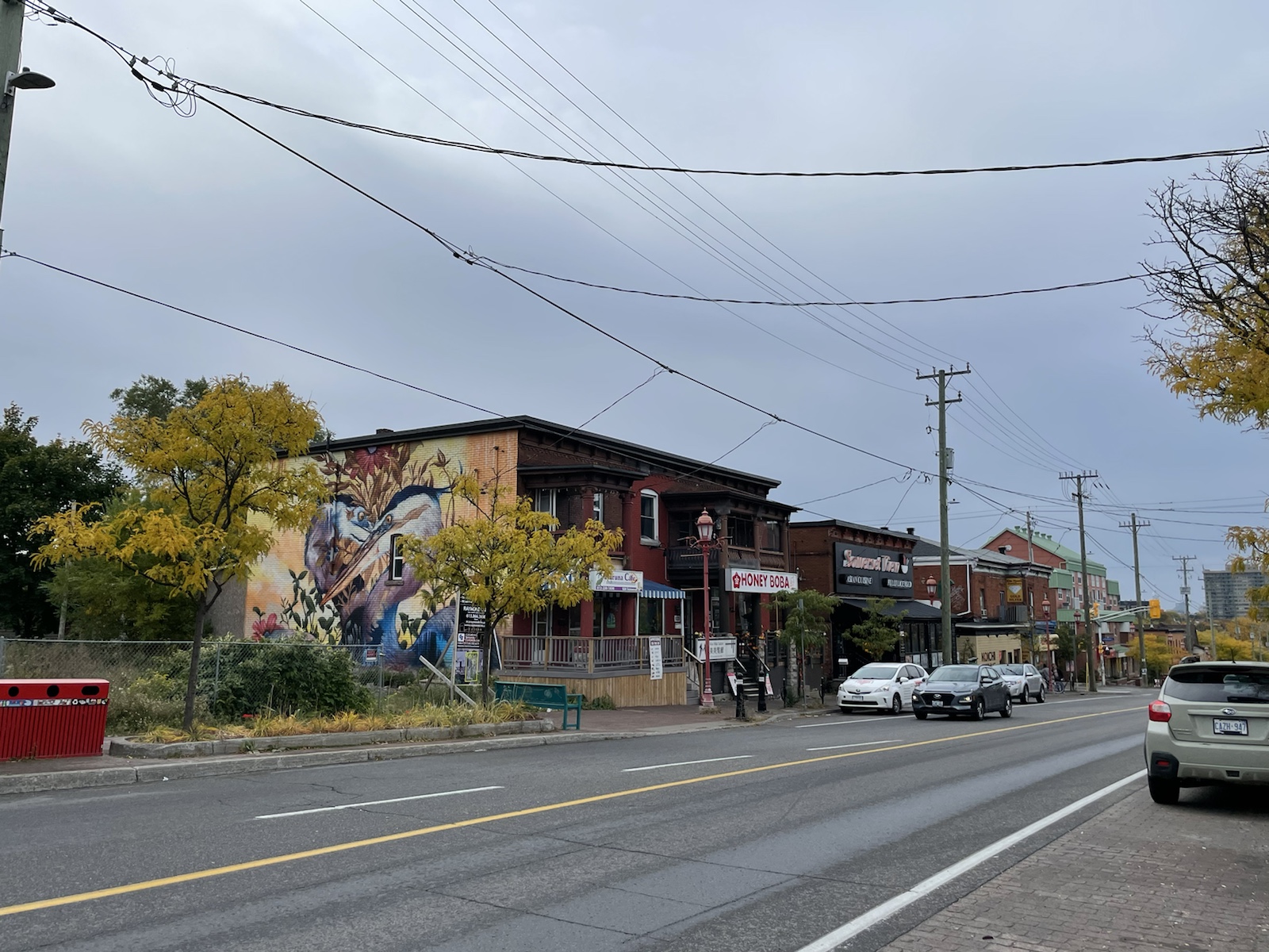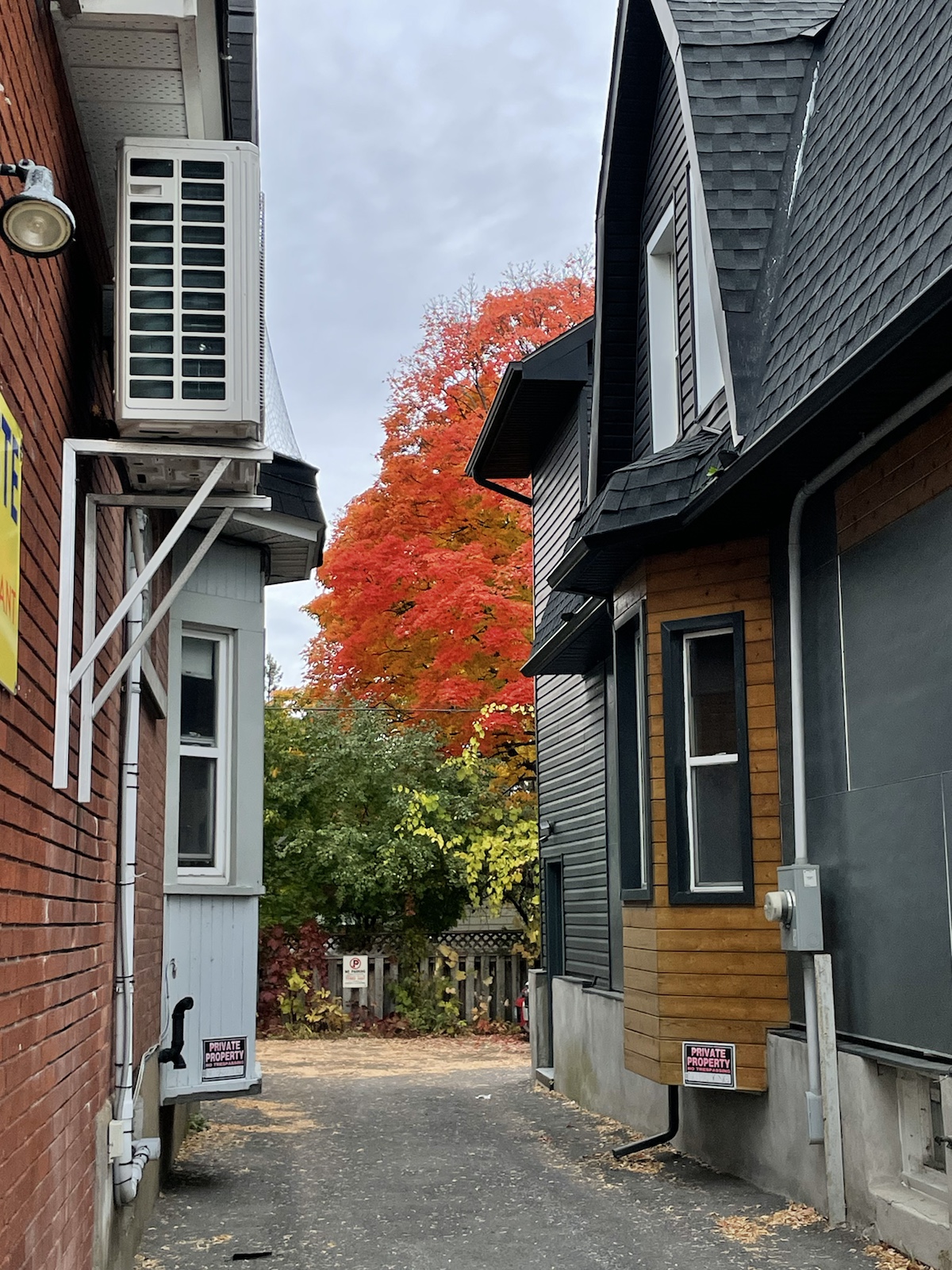 Gutes Titelbild. Herbstlich. Kanadisch.Da wir den Park in der Kälte verlassen mussten, war das Zelt noch nass, als wir es einpackten (Komdensation und Raureif), weshalb wir es – in der Hoffnung, dass es trocknet – in unserem Hotelzimmer aufbauen mussten. Wenn man genau schaut, sieht man noch trocknende Wäsche.Am zweiten Tag entschieden wir uns little Italy, Hintonburg und Westboro (musste immer an diese komische Kirche denken) anzuschauen.Kunstvoller Tacotruck.Wenn ich an einem Bücherladen vorbeigehe, muss ich stehen bleiben, hineingehen und in der Regel (wie hier) ein Buch kaufen.Ebenso musste ich in den Hexenladen. Ein teurer Tag.Grosse Teile des Quartieres schienen im Wandel, von süssen älteren Häusern zu Wohnblöcken. Gut für die Wohnjngsknappheit, jedoch auch irgenwie traurig.Kaffee?Taco!! Mit frittiertem Blumenkohl. Wirklich wirklich gut.Im canadien Superstore fanden wir fast erschwinglichen Gruyère?!Als Snack kauften wir ein paar (supergute) Scones (Pumkinspice und Hafer).Sconepause.Am Abend holten wir in userem Quartier bei einem indischen Restaurant take away. Das Essen (im Hintergrund das Zelt).Die obligate heisse Schoggi sowie ein Zelt und eine NBA Spiel im Hintergeund.