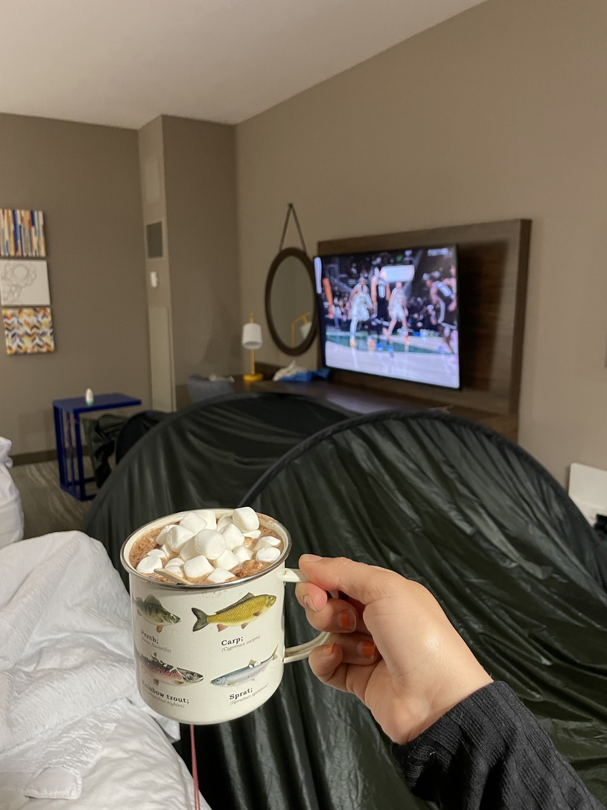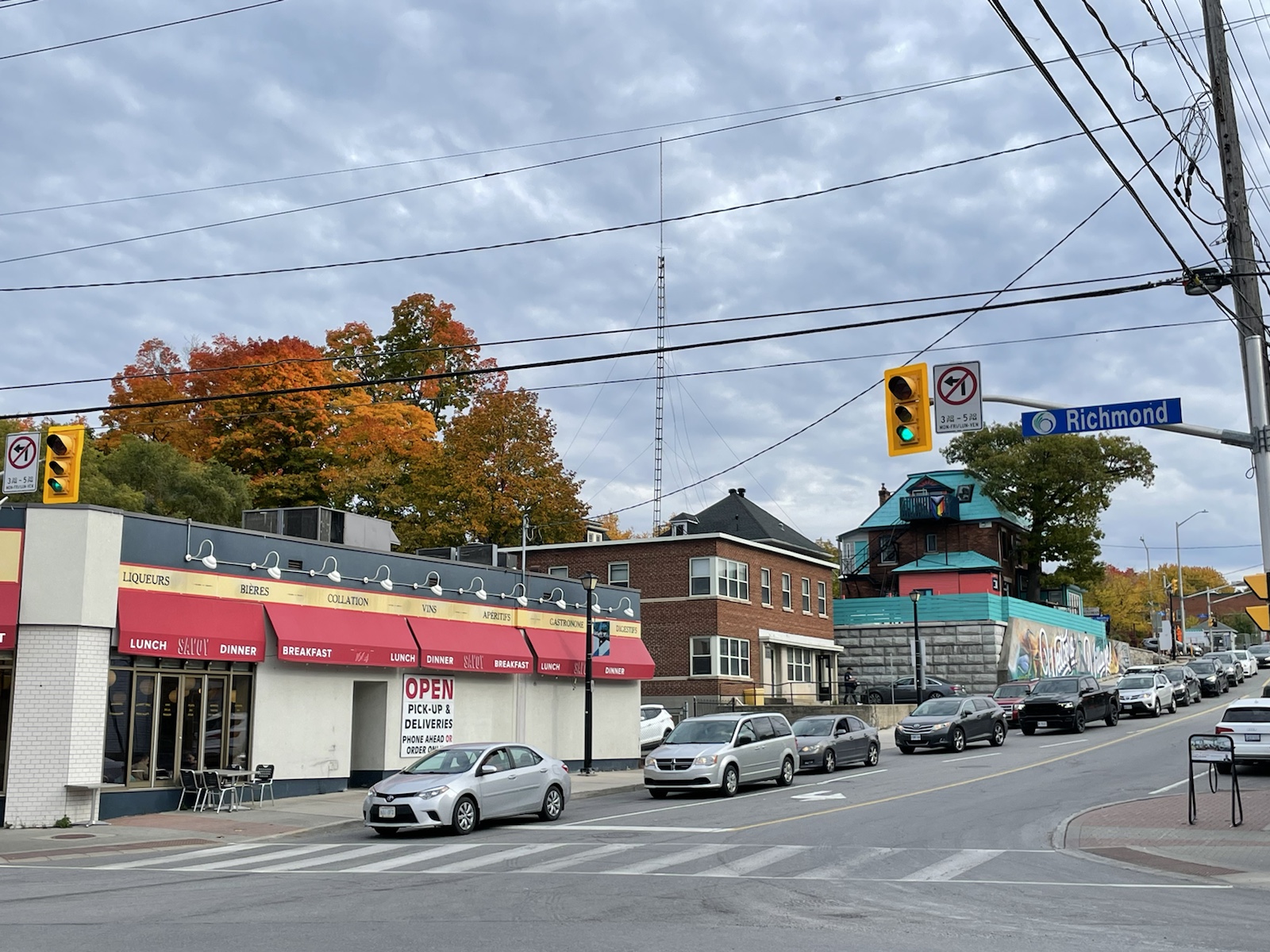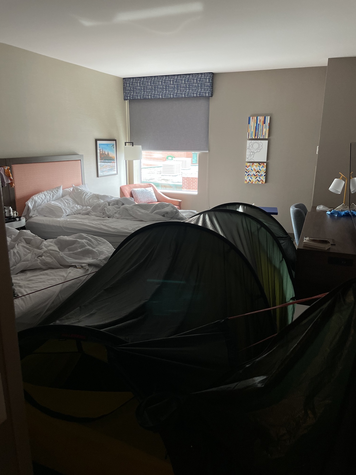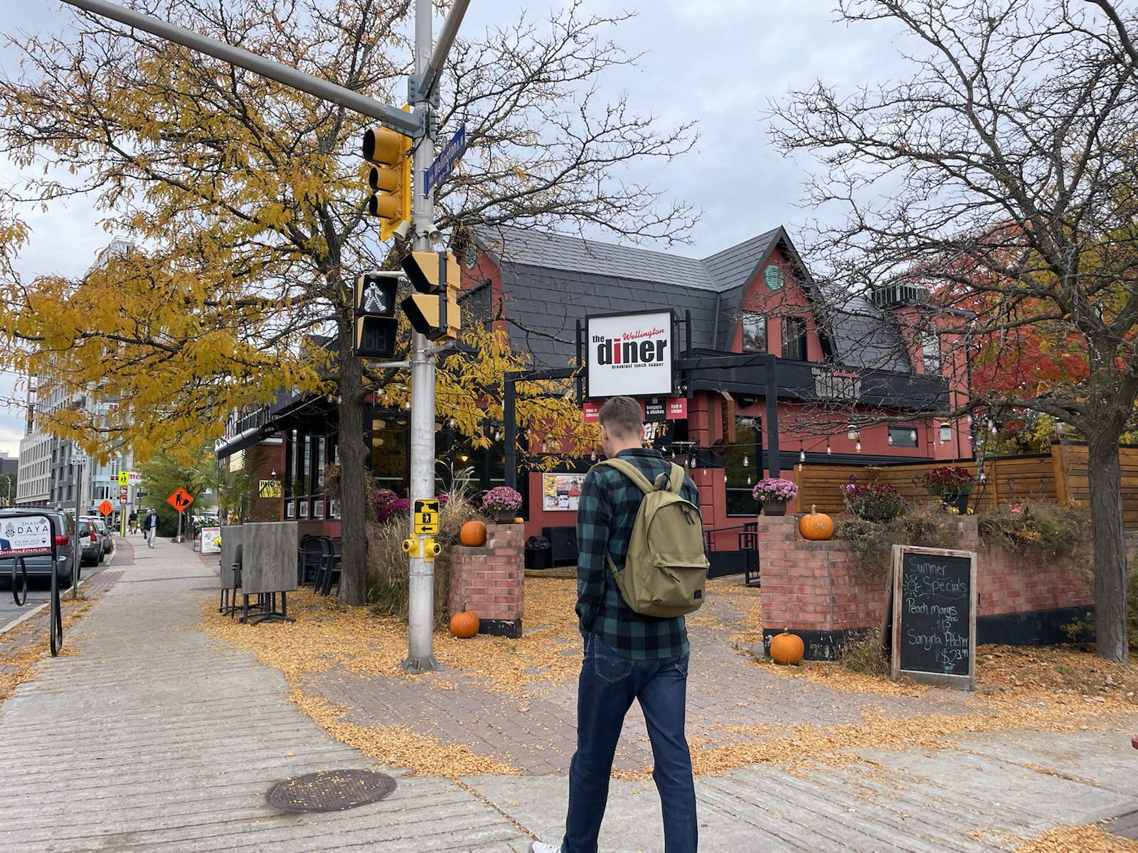 Gutes Titelbild. Herbstlich. Kanadisch.Da wir den Park in der Kälte verlassen mussten, war das Zelt noch nass, als wir es einpackten (Komdensation und Raureif), weshalb wir es – in der Hoffnung, dass es trocknet – in unserem Hotelzimmer aufbauen mussten. Wenn man genau schaut, sieht man noch trocknende Wäsche.Am zweiten Tag entschieden wir uns little Italy, Hintonburg und Westboro (musste immer an diese komische Kirche denken) anzuschauen.Kunstvoller Tacotruck.Wenn ich an einem Bücherladen vorbeigehe, muss ich stehen bleiben, hineingehen und in der Regel (wie hier) ein Buch kaufen.Ebenso musste ich in den Hexenladen. Ein teurer Tag.Grosse Teile des Quartieres schienen im Wandel, von süssen älteren Häusern zu Wohnblöcken. Gut für die Wohnjngsknappheit, jedoch auch irgenwie traurig.Kaffee?Taco!! Mit frittiertem Blumenkohl. Wirklich wirklich gut.Im canadien Superstore fanden wir fast erschwinglichen Gruyère?!Als Snack kauften wir ein paar (supergute) Scones (Pumkinspice und Hafer).Sconepause.Am Abend holten wir in userem Quartier bei einem indischen Restaurant take away. Das Essen (im Hintergrund das Zelt).Die obligate heisse Schoggi sowie ein Zelt und eine NBA Spiel im Hintergeund.