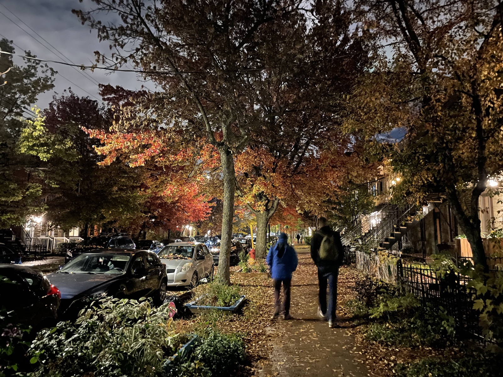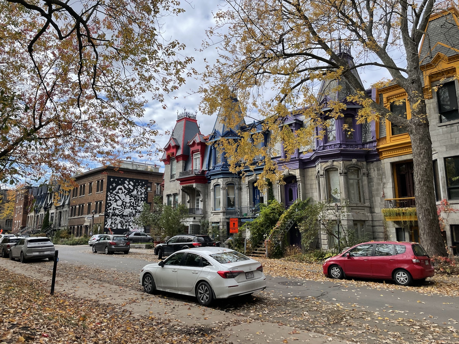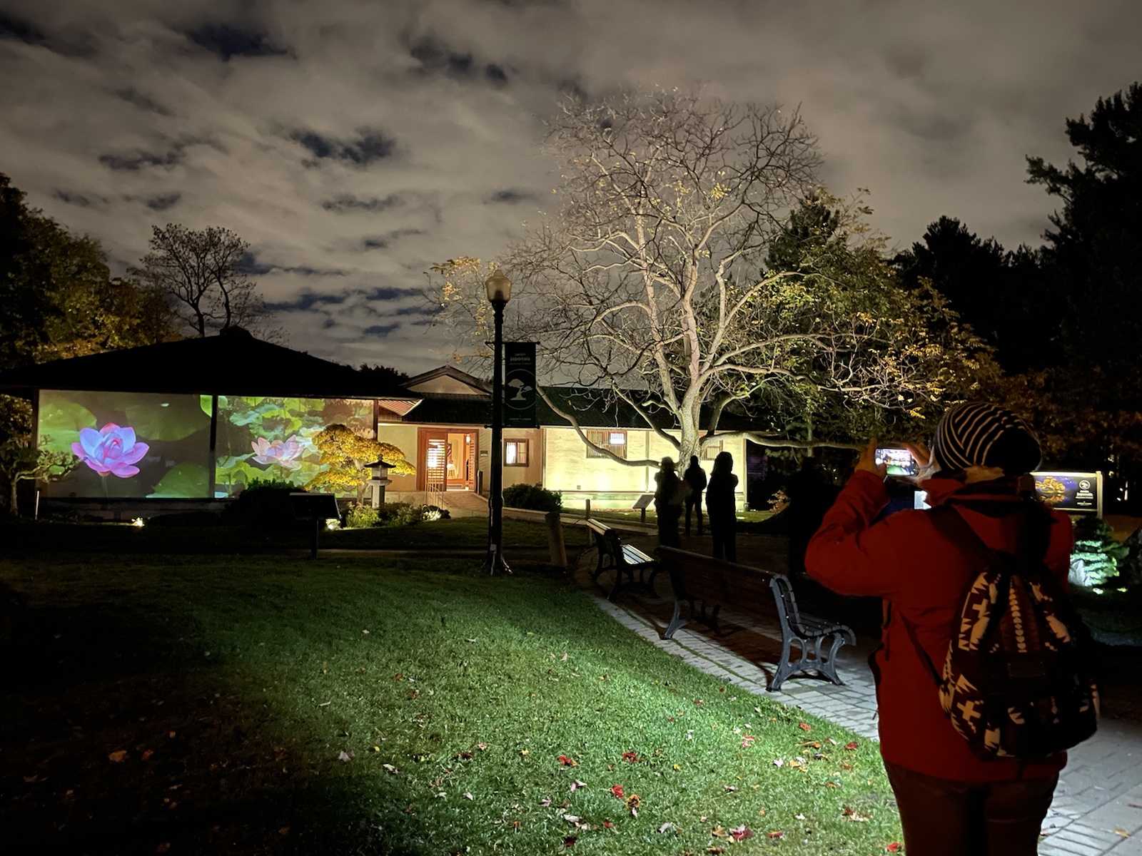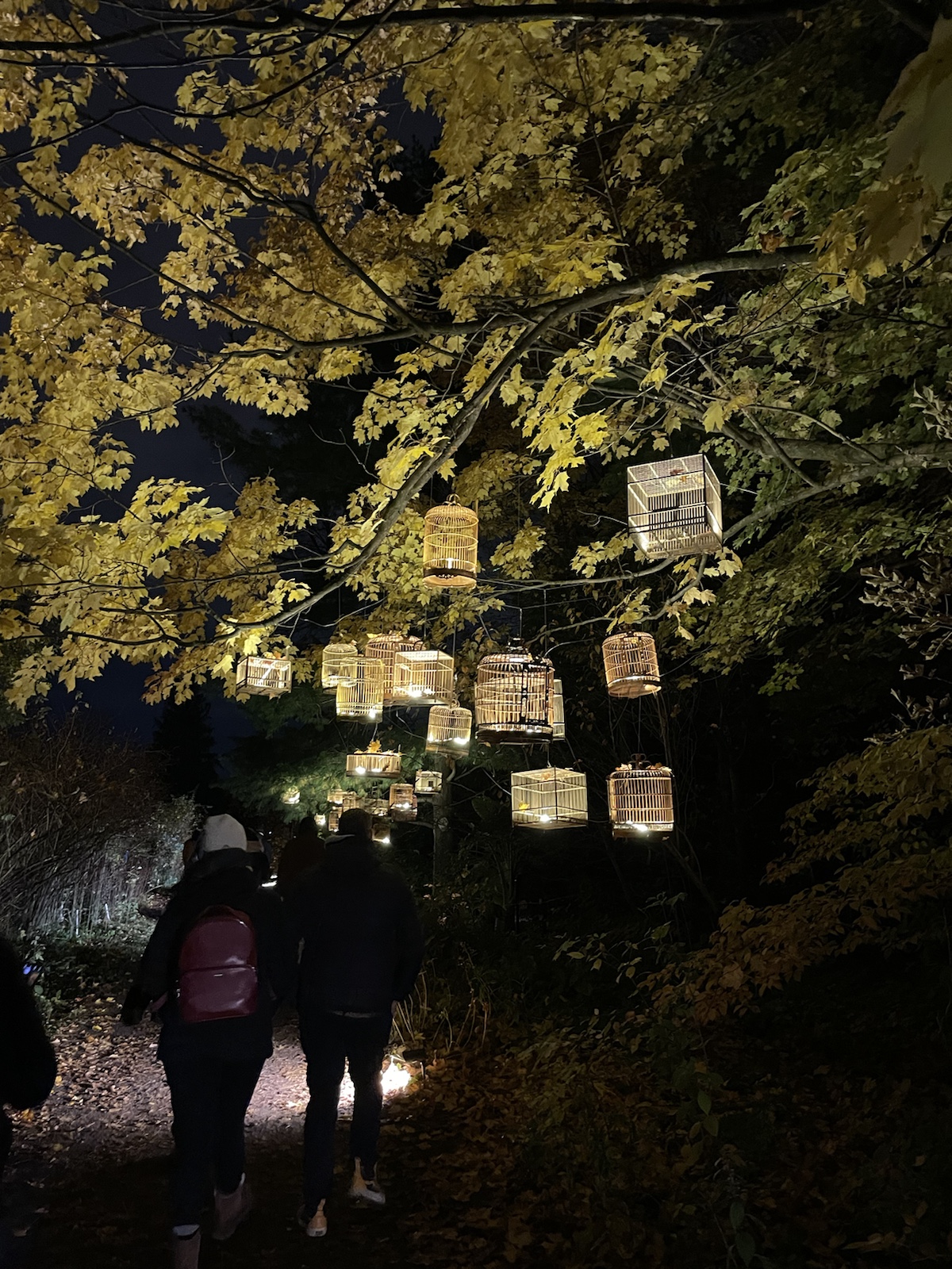 Verliebte mich jeden Tag etwas mehr in Montreal. So viele Wandgemälde und die schönsten kleinen Häuser.Musste ausserdem meine kaputte Matte zerschneiden und das Foto an Trans schicken, um mein Geld zurückzuerhalten. Dies brach mir etwas das Herz, weil wir doch einiges zusammen durchgemacht hatten.Wir trafen einander gege Mittag. Alle etwas hungrig. Leider hatte es am Treffpunkt nur ein Fastfood-Restaurant. Wit teilten daher zu viert zwei Poutine (die zweitbeste, die wir hatten).Riesige Seerose. Wir beschlossen spontan noch, das Insektarium zu besuchen. Eine super Idee. Zuerst kommt man in einen Teil, der wie ein unteridischer Ameisenbau ist, in dem jeweils verschiedene Insekteneigenschaften erklärt wurden (bspw. Wie sie die Eelt sehen, sie es sich anfühlt, die Welt von Oben zu sehen, deren Farbenspektrum etc.).Die Sicht eines Insekts.Danach betraten wir einen halbkreisförmigen Raum, im dem endlos viele Insekten ausgestellt (angepinnt) waren. Insekten Mimikri.Der Letzte Teil war eine Art Masoalahalle mit Schmetterlingen, Insekten und Ameisen. Als wir aus dem Insektarium kamen, begann es in strömen zu regnen. Wir nahmen daher den Bus im Richtung des Restaurants, in welchem wir eine Reservation hatten (nur un später zum botanischen Garten zurückzukommen). Mein Handy hatte fast keinen Akku mehr und ich fürchtete, dass wir das Restaurant nicht finden würden. Mit 1% Akku erreichten wir das Restaurand, wo wir das Handy zum Glück aufladen durften (daher gibt es leider keine Essensfotos – es war aber so so so gut). Bottega in little italy 13/10 recommend.Um 20.30 Uhr kehrten wir in den Garten zurück, welcher wunderbar beleuchtet war. Bei diesen Monden konnte man reinrufen und hörte es als Wolfsheulen. Irgendwann sah man kn den Bäumen einen Mond aufgehen und Wölfe aus Licht erschienen (Foto unten).Am Schluss kamen wir zum chinesischen Garten. Dort erwartete und eine grossartige Lichtschow mit Musik und allem. Half uns fast, die kalten Füsse zu vergessen.Auf dem Heimweg durch unser schönes Quartier.