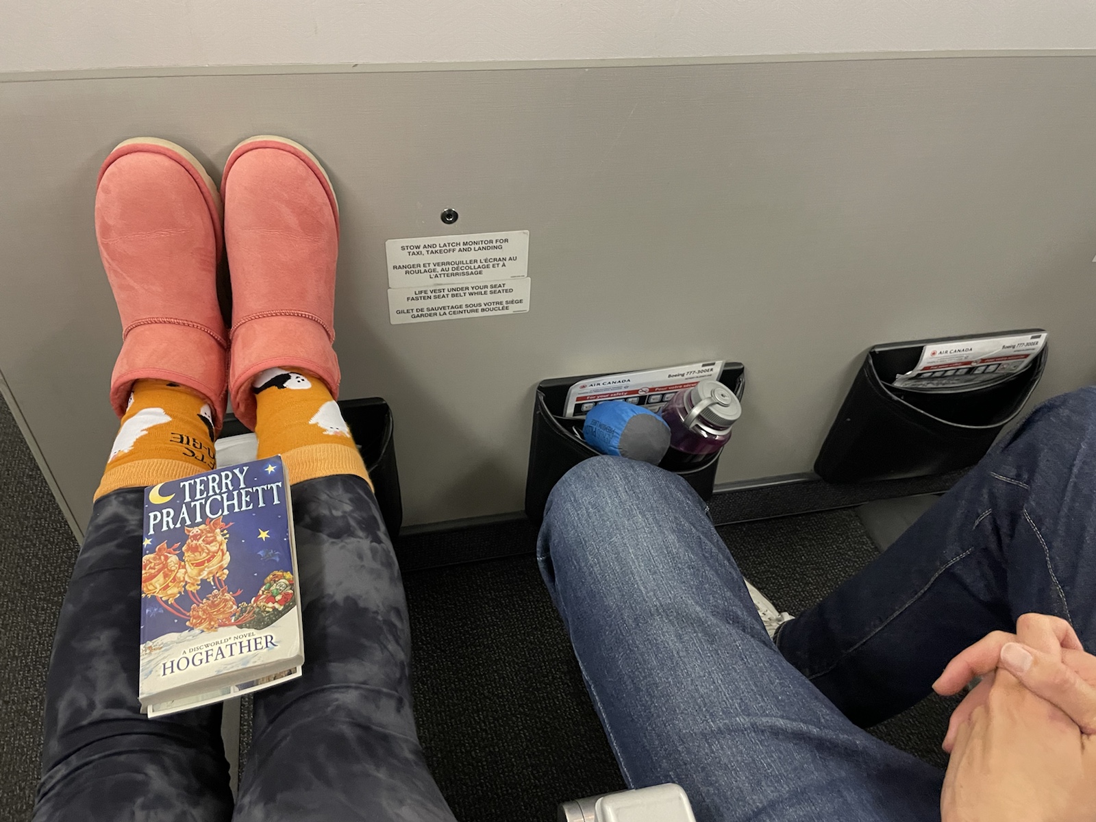 Goodbye kleines Airbnb.Mit kleiner Küche.Hallo Hotel und hallo alles für den Flug packen.Als wir an diesem Abend noch einmal nach Draussen gingen, um ein Nachtessen zu kaufen, sahen wir ein Flugzeug von dee Swiss über unseren Köpfen. Meine Eltern sollten an diesem Tag zurückfliegen und ich fragte mich, ob sie wohl in diesem Flugzeug sässes (es war das Flugzeug. Wir schauten ihm nach, bis er in den Wolken verschwand.Unser Flug ging erst un 18.30 Uhr und wir konnten zwar dank late Check-out erst um 13.00 Uhr das Hotel verlassen, mussten jedoch nich etwas Zeit totschlagen aka Supermarktzeit!!Wir fanden unter anderem das Mehl, welches sie in der Great Canadian Baking Show benutzen.Da Chrigi nett gefragt hatte, erhielten wir einen Platz mit mehr Beinfreiheit (da wir Geld sparen wollten, hatten wir im Vorfeld keinen Sitzplatz reserviert – speziell keinen mit Beinfreiheit, da die immer noch teurer sind).Zeit vor dem Flug totachlagen.Um etwa 21.45 Uhr landeten wir in Vancouver (3 Stunden Zeitunterschied, für uns war also bereits 00.45 Uhr). Unser Gepäck kam jedoch nicht, da sie ein Problem hatten und wir erhielten es erst um 23.45 Uhr. Als wir sahen, wie lange wir mit dem ÖV haben würden, entschieden wir uns für ein Taxi. Zum Glück, weil ich hatte mittlerweile hämmerde Kopfschmerzen umd wur waren beide froh, einfach direkt beim Airbnb anzukommen.