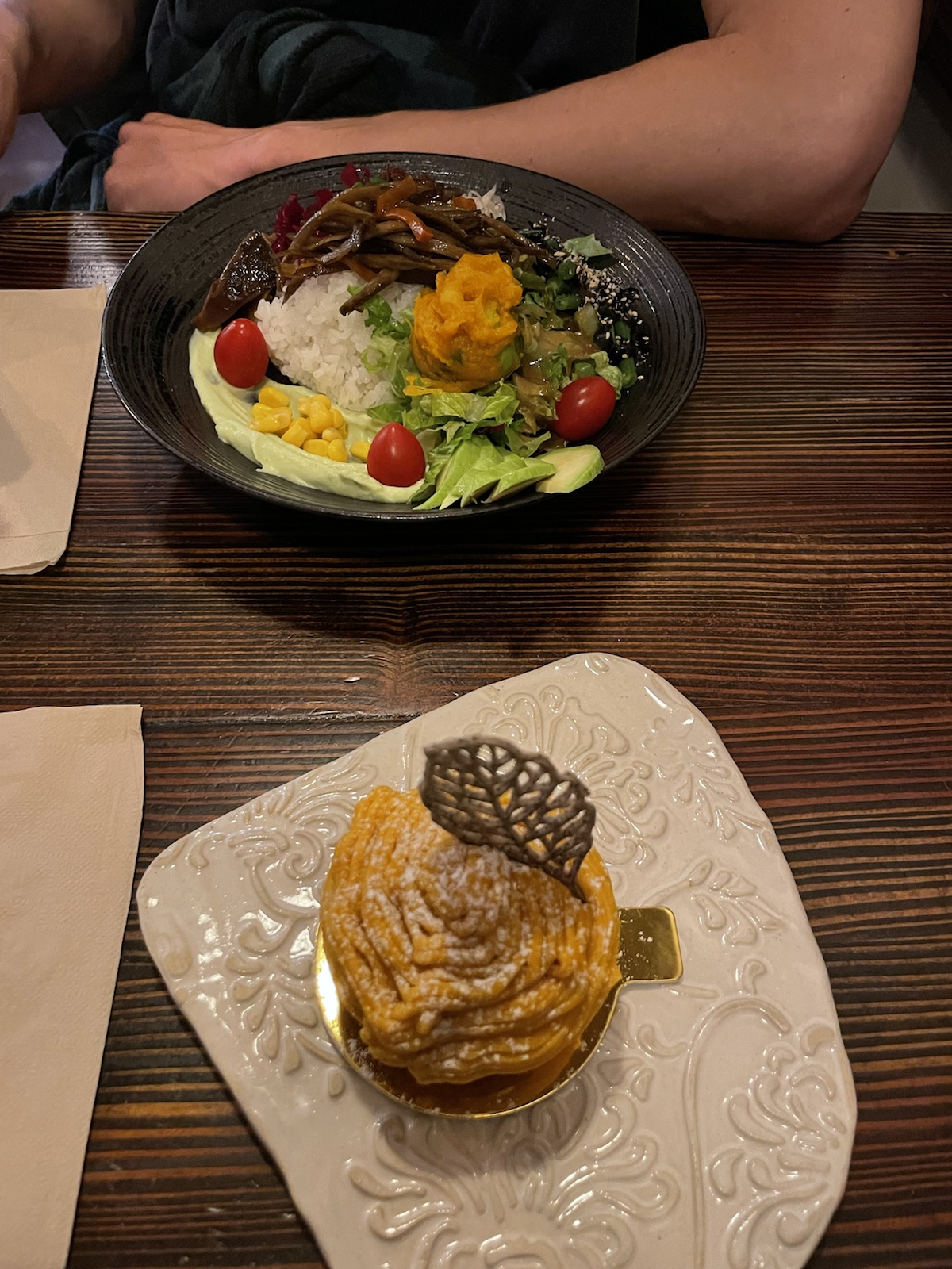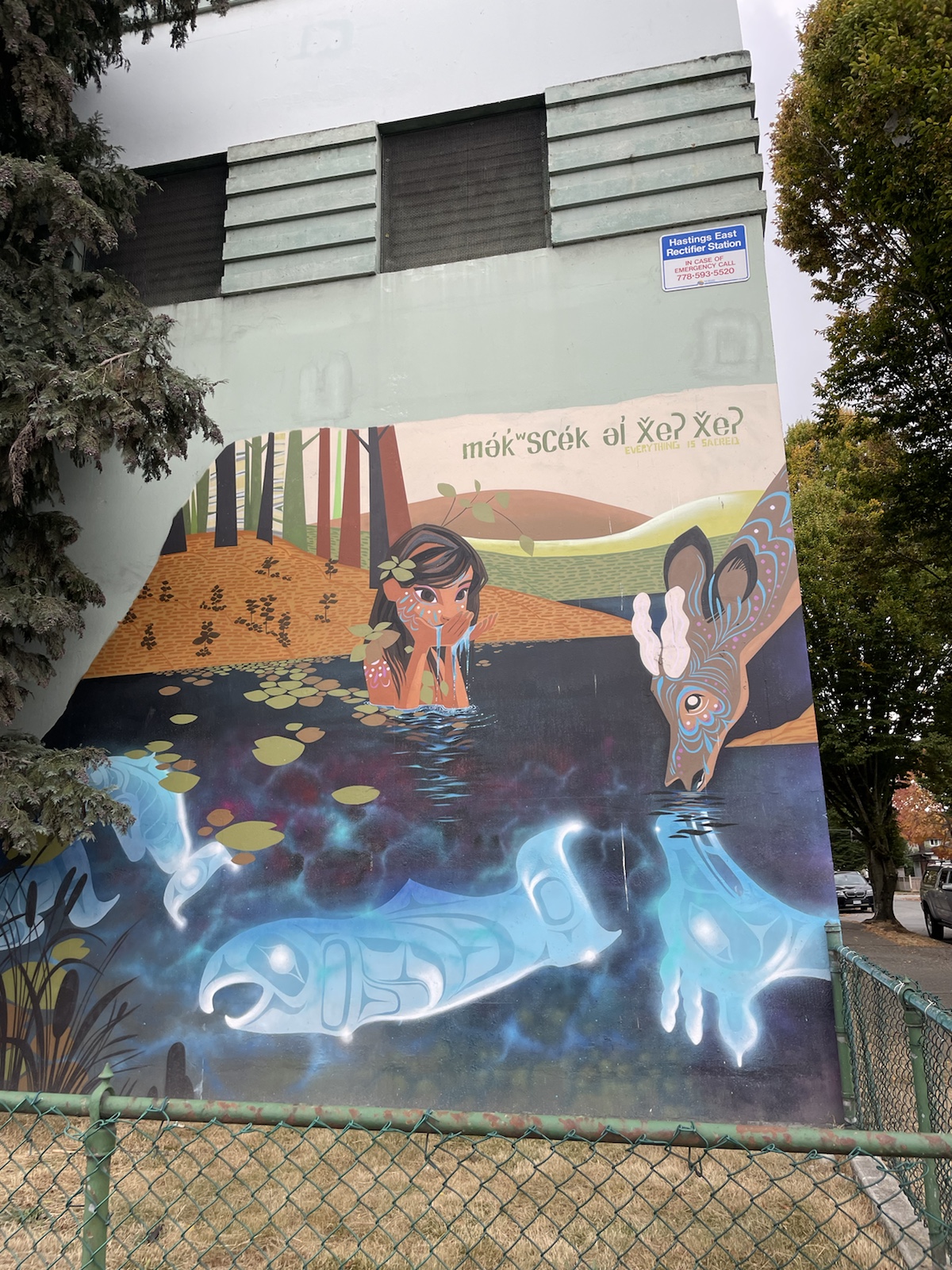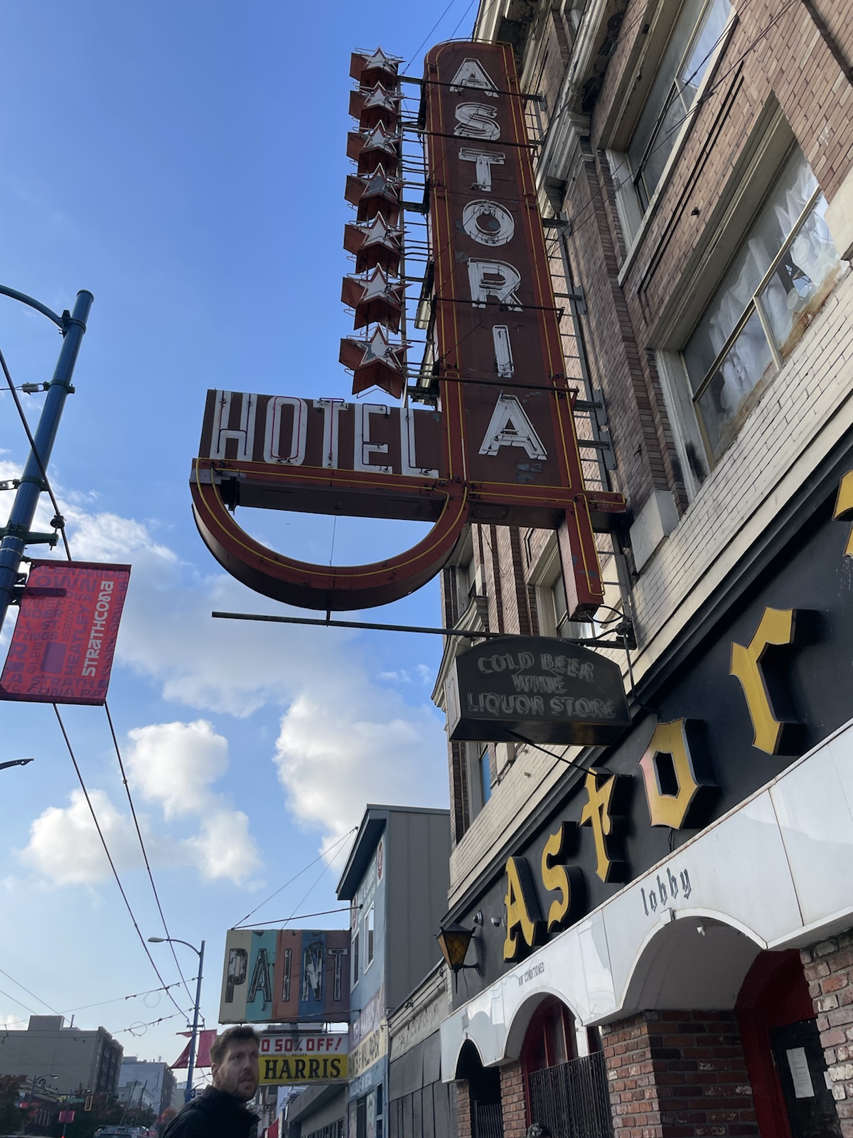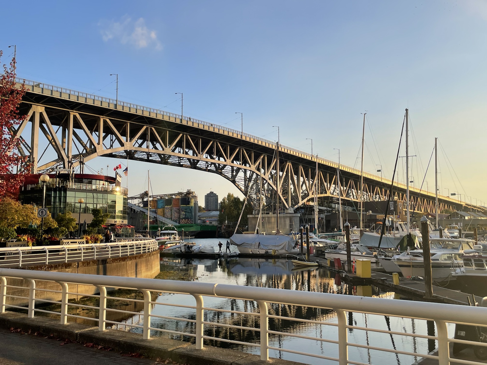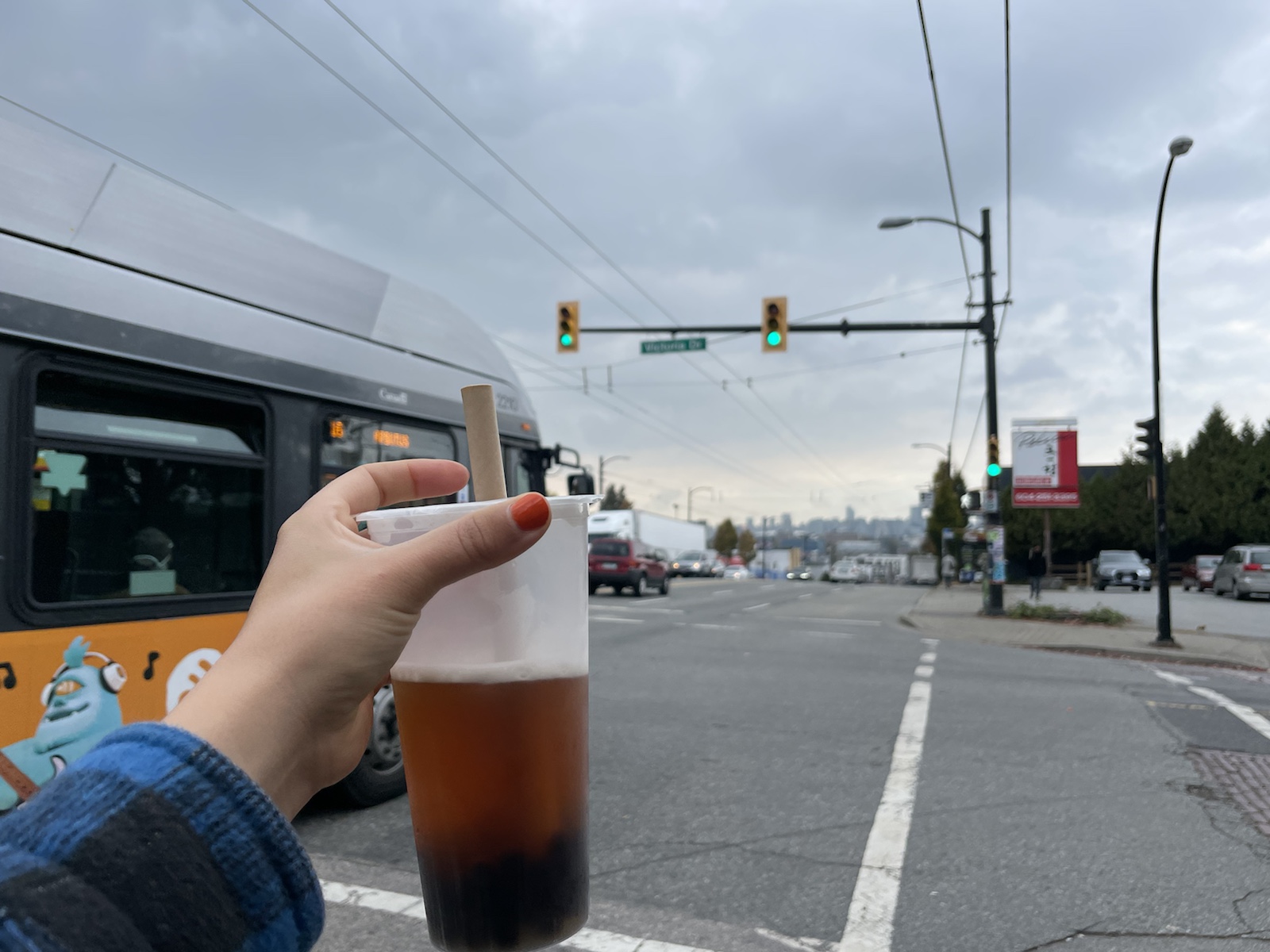 Etwas später machten wir uns mit dem Bus auf den Weg ins Stadtzentrum. Da sich unser Aurbnb etwas ausserhalb (aber sehr schön gegelen) befand, dauerte die ca. 40 Minuten. Hier sieht man von winer entfehrntek Brüche sie Skyline von Vancouver.Ich hatte im Vorfeld etwas gegoogelt und herausgefunden, dass es etwas ausserhalb von Downtown Vancouver ein Multikulti Quartier mit breiten Essensangebot geben soll, weshalb wir etwas früher aus dem Bus stiegen.Es gab wirklich vieles. Inkl. Sicht aufs Downtown vom Hügel aus. Apropos: endlich wieder Hügel. Ontario und Quebec waren grösstenteils einfach flach und in Vancouver habe ich gemerkt, wie mir die Hügellandschaften gefehlr haben. Auf dem Foto sieht man ausserdem den ersten Bubbletea der Reise.Etwas weiter vorne kamen wir an einer kleinen Brauerei vorbei. Wir sahen, dass Leute draussen standen und entschlossen nach drinnen zu gehen, um zu schauen, ob ein Beertasting möglich sei (ja, 4 Bierproben für 10 kanadische Dollar.Die Biere hatten namen wie dee schwarze Tod oder der Rattenkönig.Ein Bier (tropical Storm) war wie ein Cider aber statt Äpfel hatten sie Ananas benutzt. Es war… interessant.Danach gingen wir ein Stückchen zurück, weil wir zuvor an einem kleinen japanischen Restaurant vorbeigegangen waren, welches japanisches Curry servierte und mir nicht mehr aus dem Kopf ging. Leider hatte es das japanische Curry nicht mehr. Dafür bestellten wir eine vegetarische Bowl und ein pumpkin Spice Mont Blanc. Beides war so gut. Ausserdem verkaufte der Lade gefrohrene Ramen (also die Nudeln, gefrohrene Brühe und Gemüse alles in einem). Leider konnten wir keine kaufen, weil wir noch länger unterwegs sein würden.Wir gingen an interessanten Geschäftsmodellen vorbei…… und bereuten erneut in unserem kurzen Zwischenstop in der Schweiz kein Raclette gemacht zu haben.Als wir die Strasse entlang weiter Richtung Innenstadt gingen, kamen wir plötzlich zut Zeltstadt. Chrigi hatte mir am Voraben erzählt, dass viele Obdachlose in einem Quartier von Vancouver eine Zeltstadt errichtet hätten. Ich sagte noch, dass ich dort ganz klar nicht hinmöchte – und wo landen wir. Teilweise sprachen uns Leute an und fragten woher wir seien oder, ob Chrigi Basketball spiele und alle waren so nett. Ihre Lebensumstände machten mich so traurig.Und plötzlich waren wir aus der Zeltstadt und im ältesten und sehr touristschen Stadtteil von Vancouver. Wir kamen an einer dampfenden (oder rauchenden?) Uhr vorbei.Kurz genossen wir die Sonne in unseren Gesichtern, bevor wir weitergingen, weil wir an ein NHL Spiel mussten.Ein Riesenskelett an der Fassade.Das Intro mit der Lichtschow war krass. Auch von der drittletzten Reihe (userer) konnte man alles sehr gut sehen. Nur die Musil war extrem laut. Also ging ich raus, um Ohrenstöpsel zu suchen. Die Platzzuweiserin erklärte mir wo und ich erhielt welche für Chrigi und mich. Da wir den Tag durch relativ wenig getrunken hatten, beschloss ich ein Wasser und ein Bier zu kaufen. Als ich bezahlen wollte, wurden sämtliche Karten abgelehnt. Bargeld nahmen sie auch nicht.