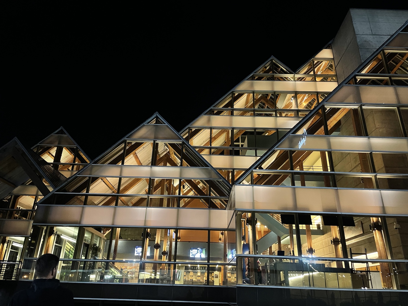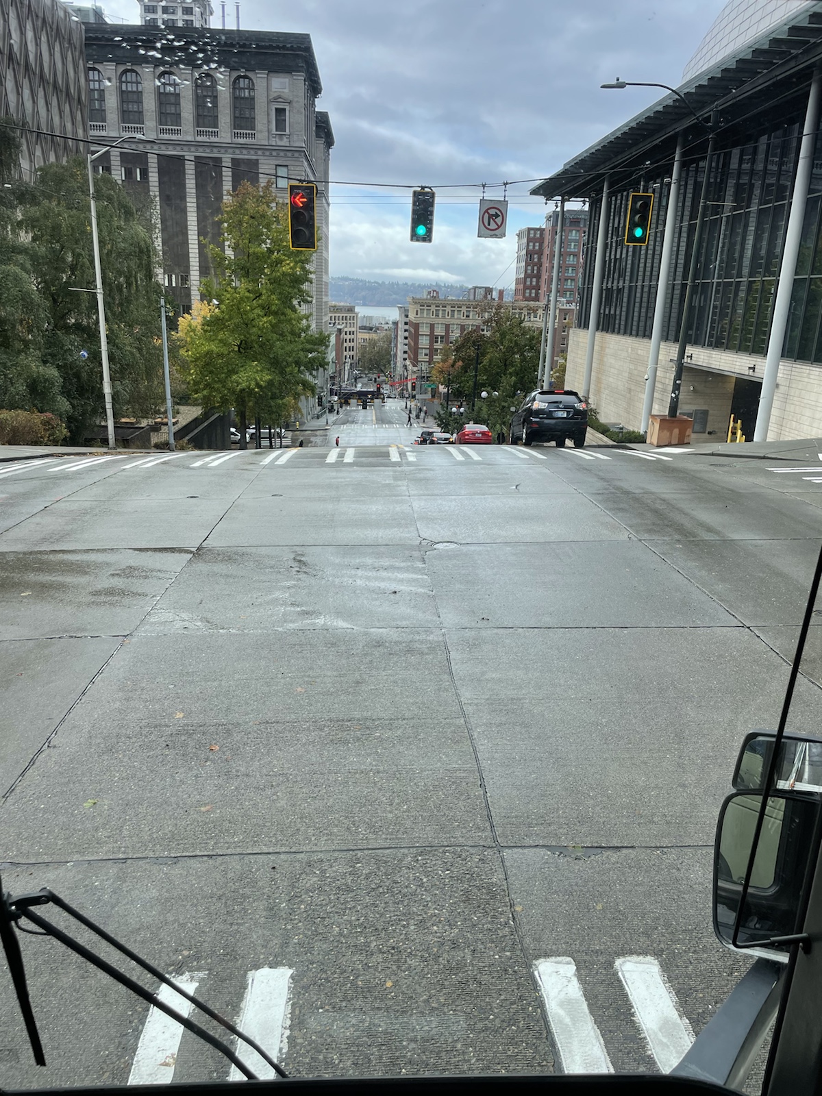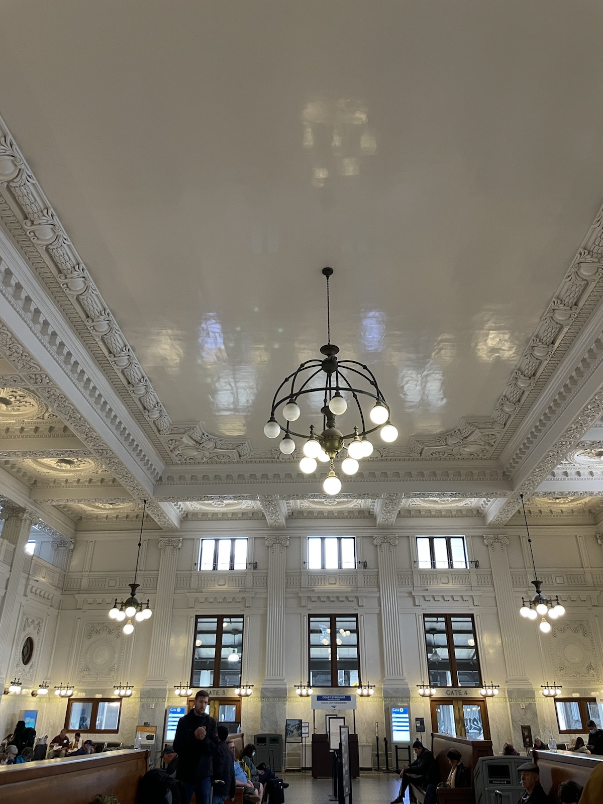 Wir kamen tatsächlich um 7.00 Uhr bei einem sehr leeren Bahnhof an. Dort wurden wir von einem sehr netten sicherheitsmann und einem Busfahrer begrüsst, die uns erklärten, wo unser Bus fahren würde (bis Seattle mussten wir mit dem Bus fahren, da derzeit – wegen Personalmangels – nur ein Zug pro Tag nach Seatlle fährt, danach mit dem Zug nach Eugene).Eine fast leere Bahnhofshalle. Chrigi und ich entschiede daher zum nebenan gelegenen Tim Hortons zu gehen.Vor der Abfahrt fanden wir zum Glück noch einen Briefkasten, um unsere Briefe zu verschicken, da wir bereits Kanadische Marke gekauft hatten.Dann kamen wir zur Anerikanisch/kanadischen Grenze. Ich bin immer etwas nervös, dass ich nicht in ein Land gelassen werde. Hier war ich speziell nervös, da wir keine Lebensmittel einführen dürfen und ich im grossen Koffer noch Salz hatte und Ramen Nudlen und Kakaopulver und Tee etc.Und wir sind in Amerika, im Pacific Northwest und ich bin glücklich.Seattle mit der Spaceneedle. Fast da.In Seattle hatten wir 1.5 Stunden aufenthalt in dieser schönen Halle.Schöne Halle, jedoch ohne Restaurants/Kaffe, weshalb ich zu Fuss zum nächstgelegenen Kaffee ging, um Kaffee für uns zu besorgen. Das Kaffee hiess Zeitgeist. Gefiel mir.Ein längerer Zwischenstop in Portland.Goodbye Portland.Eugene!Endlich kamen wir gegen 21.00 Uhr bei unserem Hotel an. Eines der Graduate-Kette, welche immer in Universitätsstädten sind und deren Einrichtung an diese anlehenen. Die University of Oregon hat als Maskottchen offensichtlich eine Ente. Die Gründer der Marke Nike waren Stundeten an der heusigen Uni und operierten zunächst aud Eugene heraus, weswegen der ganze Eingangsbereich mit Nike-Sachen dekoriert war.Wir verliessen unser Hotelzimmer nach unserer Ankunft sogleich wieder, um zum Vodoo Donuts zu gehen. Verständlicherweise.
