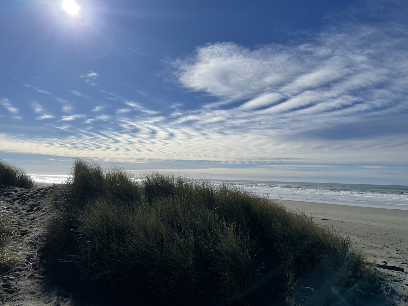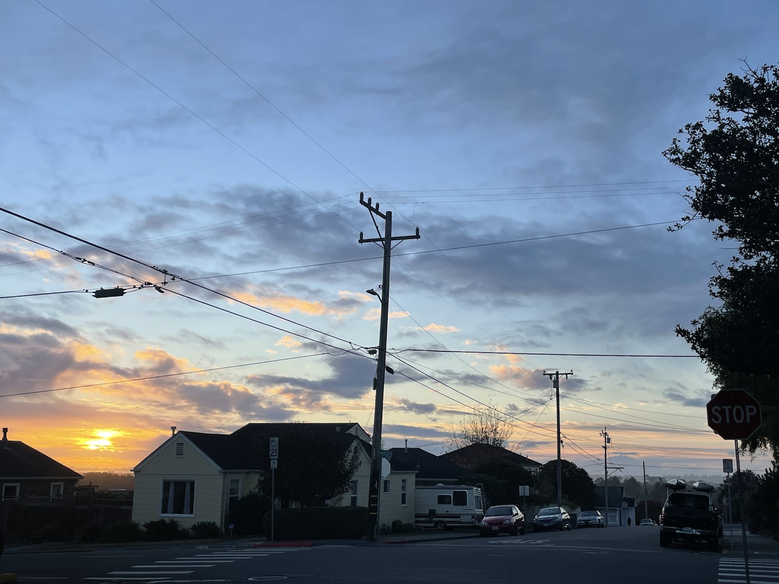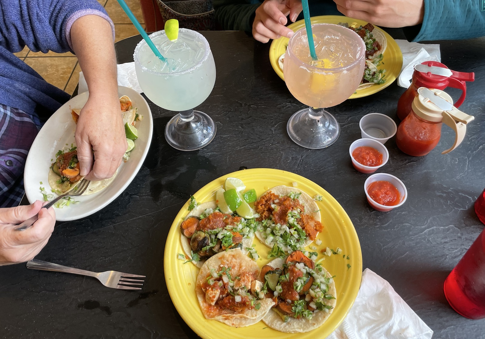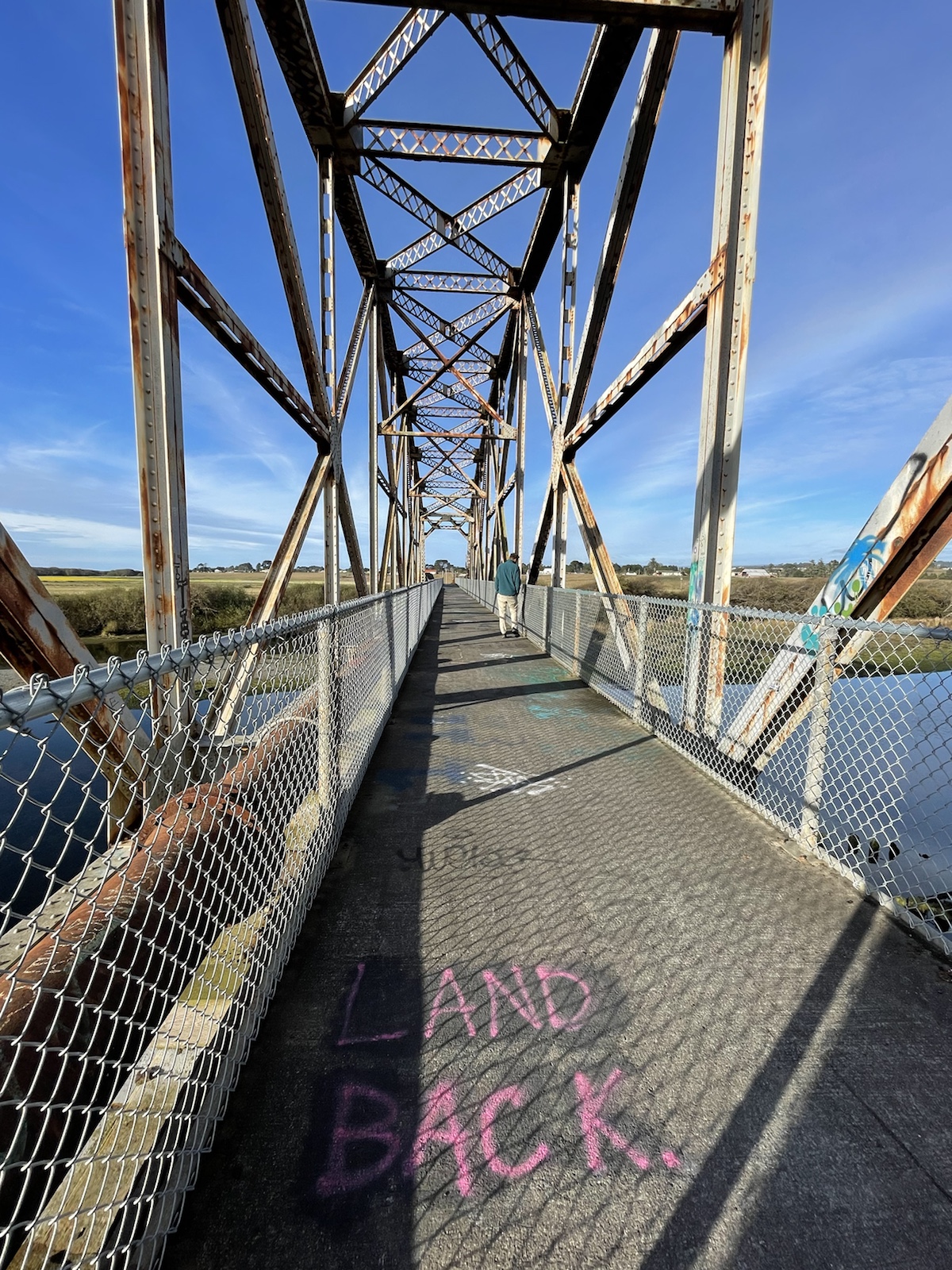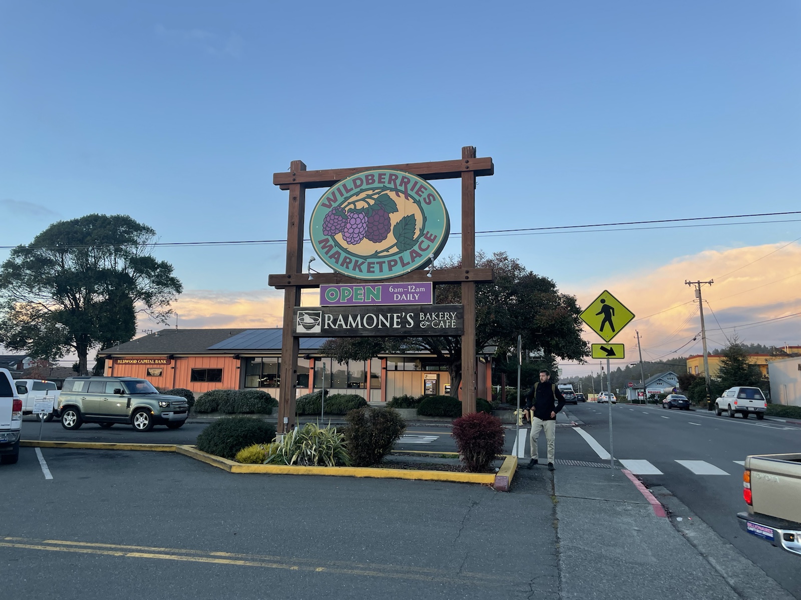 Da ich schon immer einmal in eine Kletter- resp. Boulderhalle wollte, war ich begeistert, als ich herausfand, dass sich in Arcata eine Halle befindet.Chrigi war natürlich von beginn weg dynamisch und kraftvoll unterwegs..Und ich versuchte mein Bestes.Chrigi krabbelte hoch.... und ich versuchte mich festzuhalten.Es war ein super Erlebnis, welches ich unbedingt wiederholen wollte, obwohl ich nach dem Bouldern drei aufgeplatzte Blatern an den Handinnenflächen hatte.Wunderbarer Baum.Kleiner Kolibri.Taco Tuesday!Danach ein Besuch eines Altars, den ein ansässiges Bagelunternehmen (los Bagels) für den dia de Muertos eingerichtet hatte.Der nächste Morgen war verregnet, weshalb wor entschieden in den nahegelegenen Redwoodwald spazieren zu gehen, wo wir besser vom Regen geschützt sein würden.Banana Slug!BANANA SLUG!Nach rund 10km beendeten wir den Spazierganz, da ich vom Klettern ziemlichen Muskelkater hatte und uns auch das Tageslicht davonrannte.Da wir beide hungrig waren, entschieden wir im Wildberries eine Zwischenmalzeit einzubehmen. Dort fanden wir an der Aussenseite vom Wildberries einen kleinen Raum, von dem aus man auf die Lagune sehen konnte.Zum Znacht gab es Gemüse vom Samstagmarkt.Ausserdem Marshmallows. Meine aufgeplatzen Blatern an den Händen behandelte Karen mit Comfrey (echter Beinwell: https://de.wikipedia.org/wiki/Echter_Beinwell) aus ihrem Garten. Leider liess ich ihn zu lange trocknen und musste ihn danach von meinen Händen abreissen, was die Wunden wieder aufriss.Am nächsten Tag erschien die Sonne wiedee. Wir beschlossen noch einmal ans Meer zu gehen. Zunächst fanden wir den Zugang zum Meer nicht, dafür tausende von Kanadagänsen.Wir fanden es schliesslich und assen am kühlen und windigen aber sonnigen Strand unsere Sandwiches.Chrigi ging dann auf Schatzsuche und ich stand bis zu den Knien ins Wasser.Auf dem Rückweg kamen wie noch an einer schönen Brücke und…… einem Banana Slug (!!) vorbei. Meine Socken sind wegen dem vielen Sand an den Füssen verlehrt herum angezogen.Zum Teil trafen wir auch nach Halloween auf Halloweend-Dekorationen, was mich jedes mal freute.