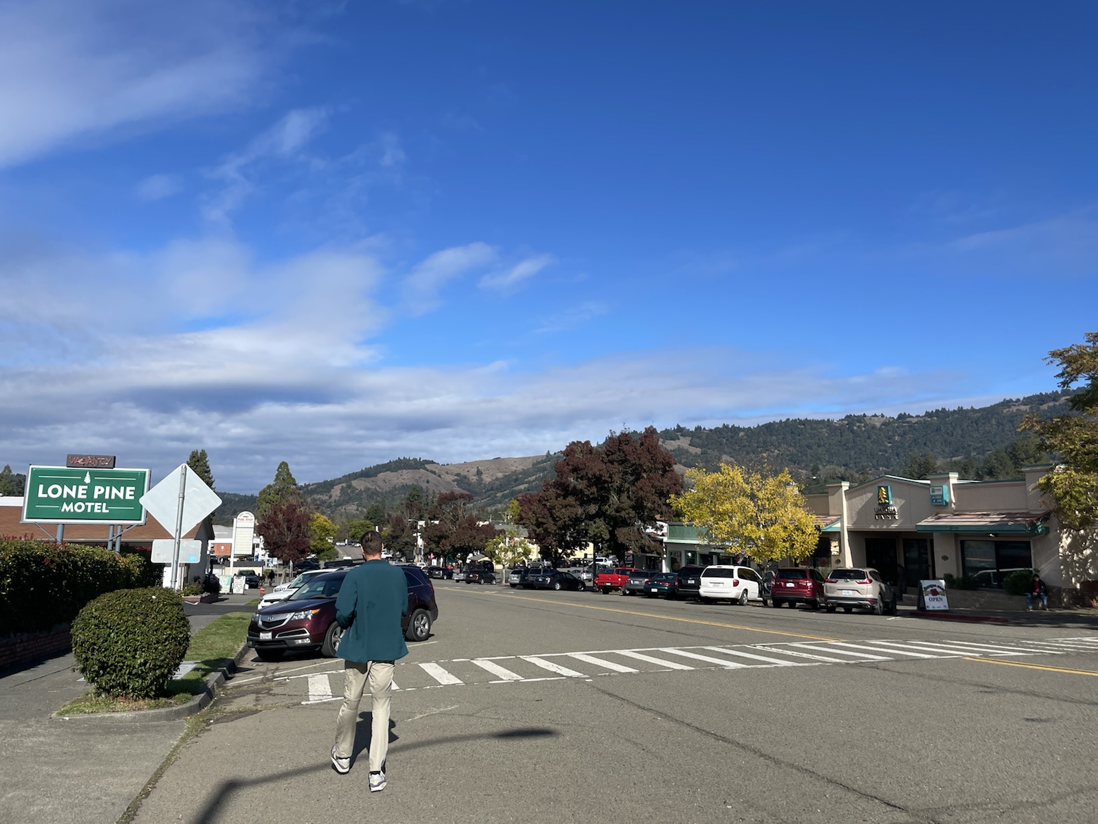Während unserer Fahrt (zunächst gen Süden und dann in die Mitte Kaliforniens) durchqueren wir Sequoiawälder.Zum ersten Mal sehe ich in diesee Gegend Schnee. Abgesehen davon, fühlt es sich nicht wie Anfang November an.Erster Zwischenstop mit Übernachtung in Santa Rosa. wir treffen auf die ersten Palmen.Vietnamesisch zum Znacht und endlich, endlich wieder Gemüse.Am nächsten Morgen ein Highlight: eine Pancakemaschine.Am nächsten Tag verwandelt sich die Landschaft von nebligem Küstenwetter mit Nadelbäumen in warmes Wetter mit Eichen. Wir durchqueren Napa Valley, um nach Sacramento zu gelangen.In Sacramento haben wir ein Hotel gefunden, welches nur 3 Minuten vom Basketballstadion entfehrnt ist, damit es nicht weit zurück sein wird nach dem Spiel. Dieses hatte jedoch nur eine Nacht Kapazität, weshalb wir die Nacht zuvor in Davis übernachtet haben. Davis ist eine Universitätsstadt. Wir waren dort jedoch nur im Trader Joe‘s (Znacht einkaufen) und später als Spaziergang vom Motel aus zu Fuss in einem Target. Kann die Stadt daher nicht beurteilen.Nahtloser Übergang von Halloween- zu Weihnachtsdeko.