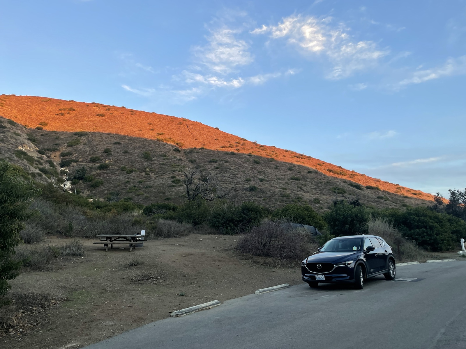 Je südlicher wir unterwegs waren, umso mehr Palmen säumten den Weg.Nach einer, wegen diverser Baustellen, unerwartet langen Fahrt, machten wir eine Pause in einer Mall. Genauer in einem ganzen Dorfkonstrukt, was eine Mall war. Eigentlich wollten wir nur noch einmal kurz zum REI (um liners zu kaufen, eine Art Schlafsack für warmes Wetter, respektive eine zusätzliche Schicht gegen Kälte bei ja, kaltem Wetter). Da wir noch nichts richtiges gegessen haben, haben wir spontan in Whole Food (eine teure Biokette der USA) zu Mittag gegessen,und später einen Bubble tea (Rose/Matcha) zu uns genommen, wobei letzterer etwas süss war.Kleiner Kolobri.Weihnachtsdeko bei über 20 Grad.So viel Swiss Miss. Dies war im Target. Dort wollten wir unter anderem Bier kaufen, was uns jedoch nicht verkauft wurde, weil wir keinen Pass (nur die ID) dabei hatten. Ich werde noch immer wütend, wenn ich daran denke.Kurz vor Sonnenuntergang (wie immer) kamen wir beim Campground an, wo wir zwei Nächte bleiben würden, bevor wir das Auto Abgeben und für knapp drei Tage in LA sein würden.Am zweiten Tag gingen wir wandern. Wir hatten während dem Frühstück Leute beim wandern auf dem Hügel über unserem Zeltplatz gesehen und entschieden, es ihnen gleichzutun.Wir wurden mit Aussichten ….… und mit Tieren belohnt. Wir glauben, dass diese Maus blind ist. Eine solche hatten wie bereits in Sa ta Cruz im Campgeound angetroffen. Sie kam immer wieder mit dem Kopf aus einem Erdloch, um Grashalme zu essen. Dabei störte es sie nicht, dass Chrigi sie mit einem Lampe anleuchtete und uch sie dabei filmte. Genauso war es bei dieser Maus. Als wir aufgehört haben, und zu bewegen tapste sie seelenruhig umher und stiess mit dem Kopf unfallmässig gegen einen Ast.Nach dem Wandern kühlten wir uns im Meer ab.Machten Luftsprünge.Und assen anonym Znacht. In dieser Nacht würden wir nicht viel Ruhe finden, was wie in diesem Zeitpunkt natürlich noch nicht wussten.
