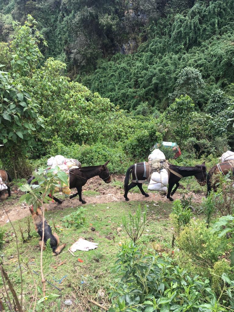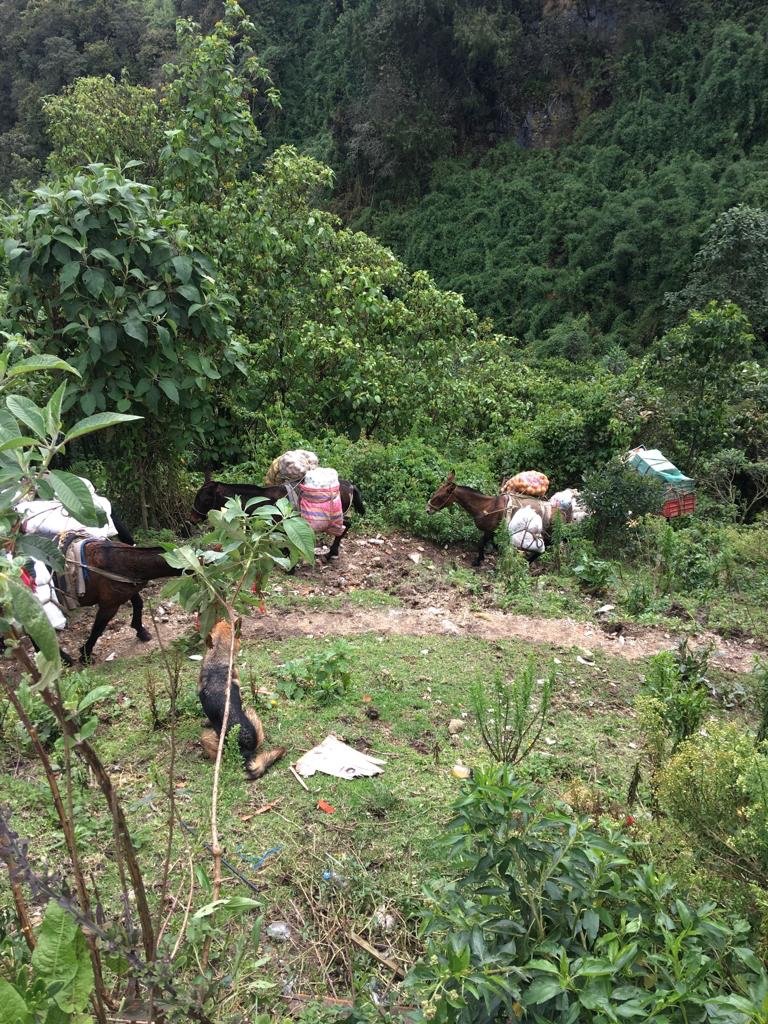 Auf einmal hörte Chrigi neben/unter dem offiziellen Wanderweg etwas und sah eine Mauleselkaravane mit Lebensmitteln ziemlich steil und direkt bergauf kommend.