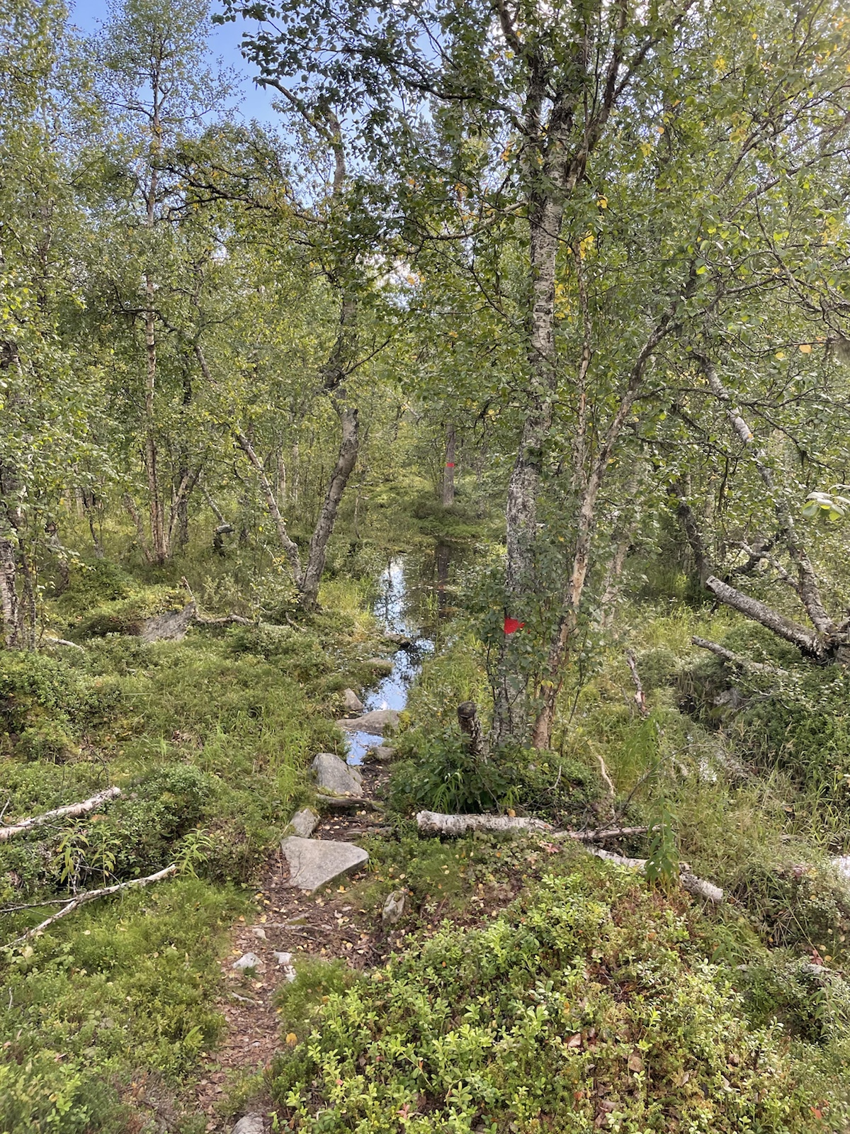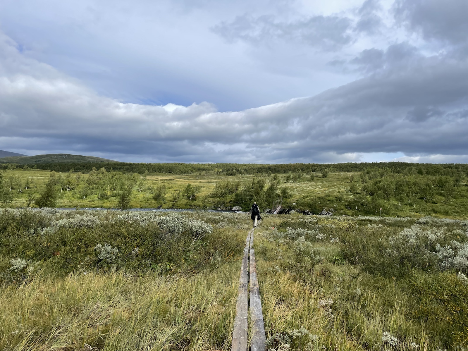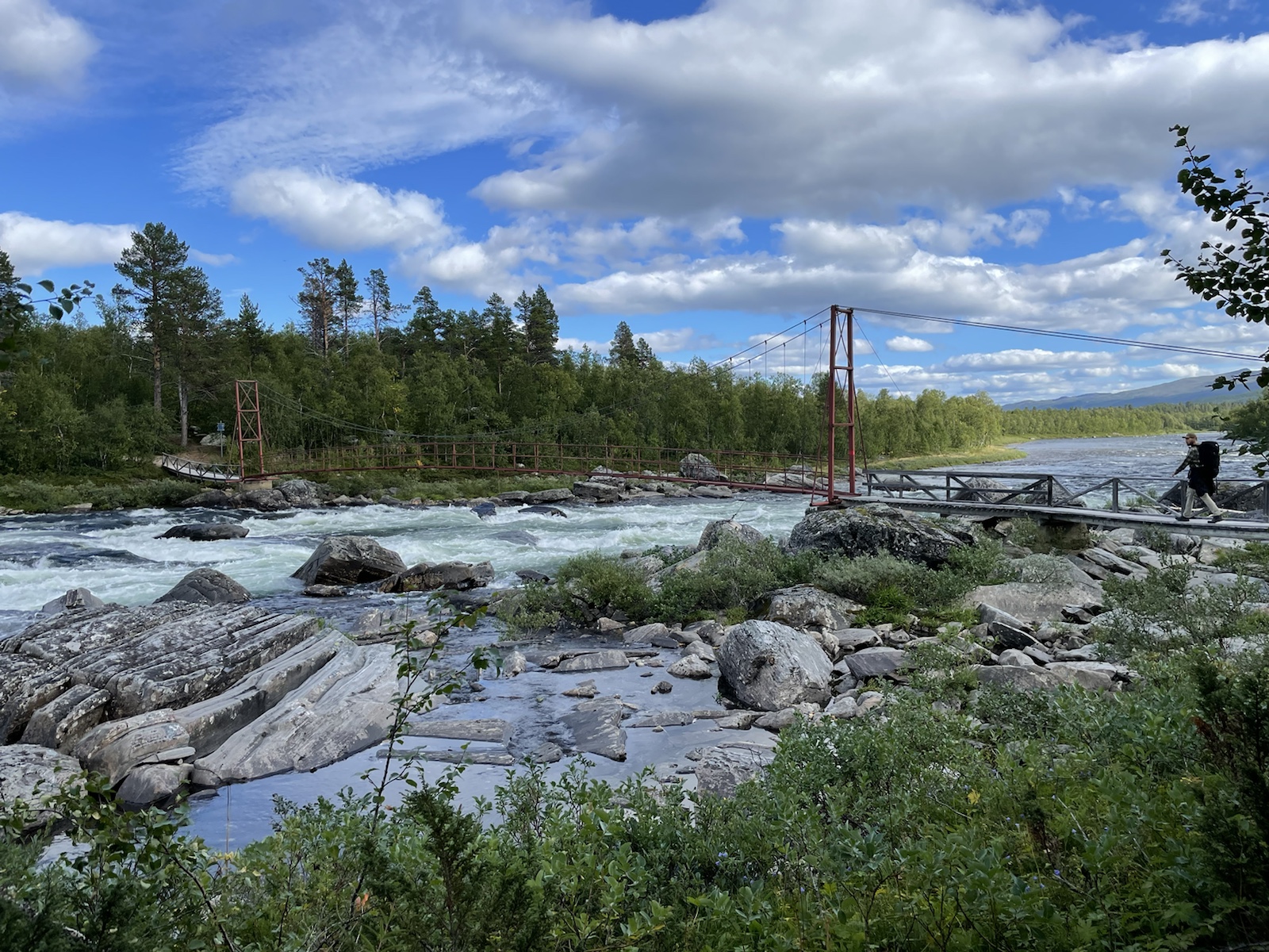 Er begann seine Wanderun in Abisko. Dies ist der nördlichste Punkt des Kungsleden und idealerweise unser Ziel. Er ist demzufolge SoBo (Southbound, also nach Süden) und wir NoBo unterwegs, wobei er an einem Tag 45 km gegangen war. Nach Jäckvik (wo ich mich derzeit befinde) sei er an einen reissenden Fluss gekommen, wo eine Brücke hötte sein sollen. „Where is the bridge??“. Die Brücke sei auf die andere Flusseite geschwemmt worden. Er sei dann dem Flussufer entlang gegangen, um nach einer Stelle zu suchen, die traversierbar gewesen wäre. Nach einem langen Umweg habe er die Brücke vom Wintereeg gefunden, wobei er, um an diese zu kommen durch hüfthohes Wasser habe waten müsseb. Dies beunruhigte mich, jedoch hoffte ich, dass die Ranger in Adolfström, welchen er von der Brücke erzählt habe, diese in der Zwischenzeit repariert hätten.