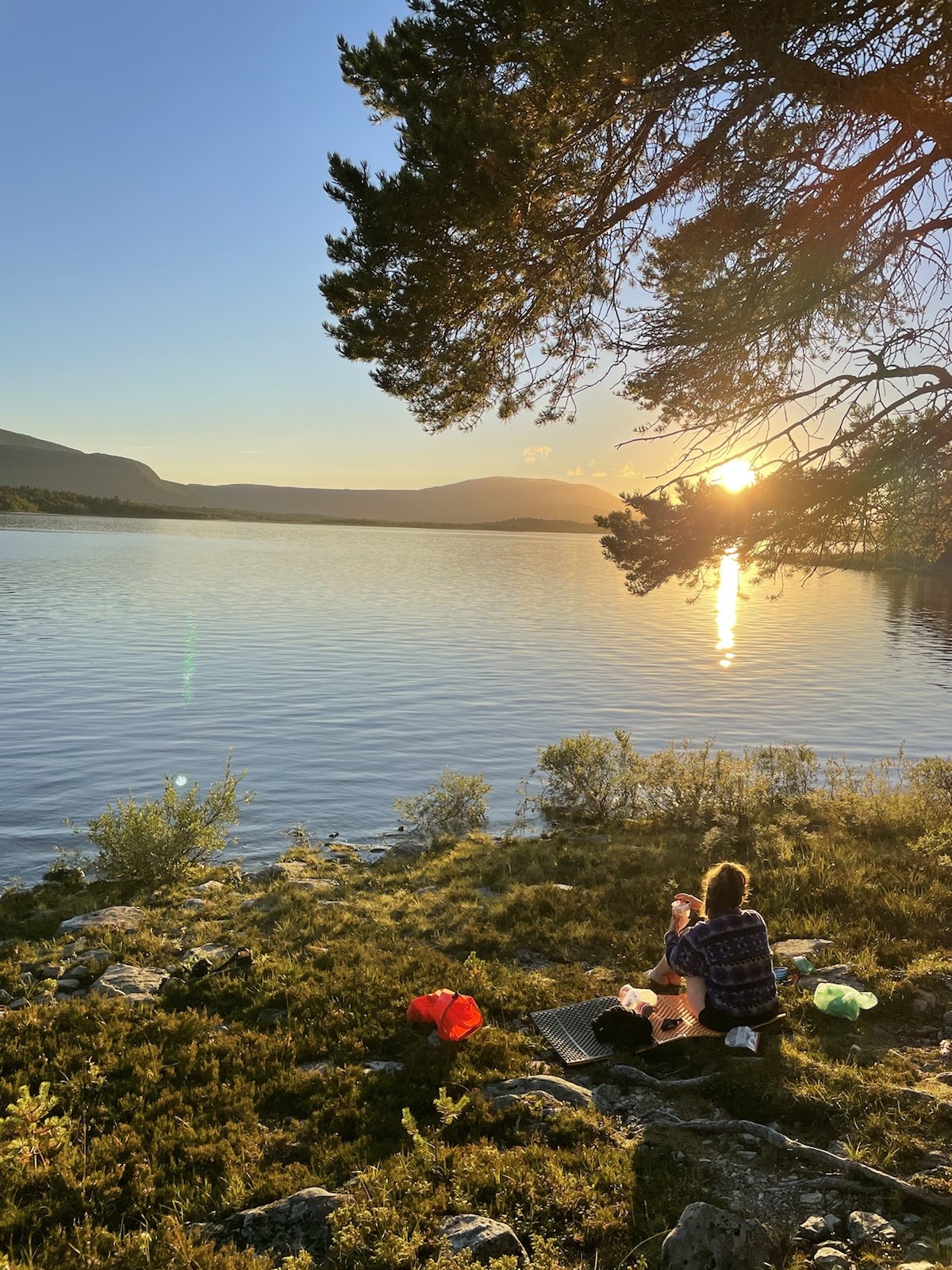 Im letzten Teil der Wanderung, welcher gefühlt ewig dauerte, trafen wir auf einen Deutschen, der uns erklärte, dass es vor Adolfström (unserem Tagesziel) „lauschige Plätzchen“ am See habe. Von diesem Zeitpunkt an, hielten wir nach Pfanden, die an den See führten Ausschau. Knapp vor Adolfström fanden wir einen Pfad, der und direkt an den See führte und der dahinter im Wald einen Platz für das Zelt hatte. Wir waren ganz alleine. Es war so perfekt, dass ich absolut misstruisch war und ständig abgst davor hatte, dass ezwas mit de Platz micht stimme, oder der Deutsche uns austauben werde. Dem war nicht so. Es war – mit Ausnahme der Mücken – einfach perfekt.
