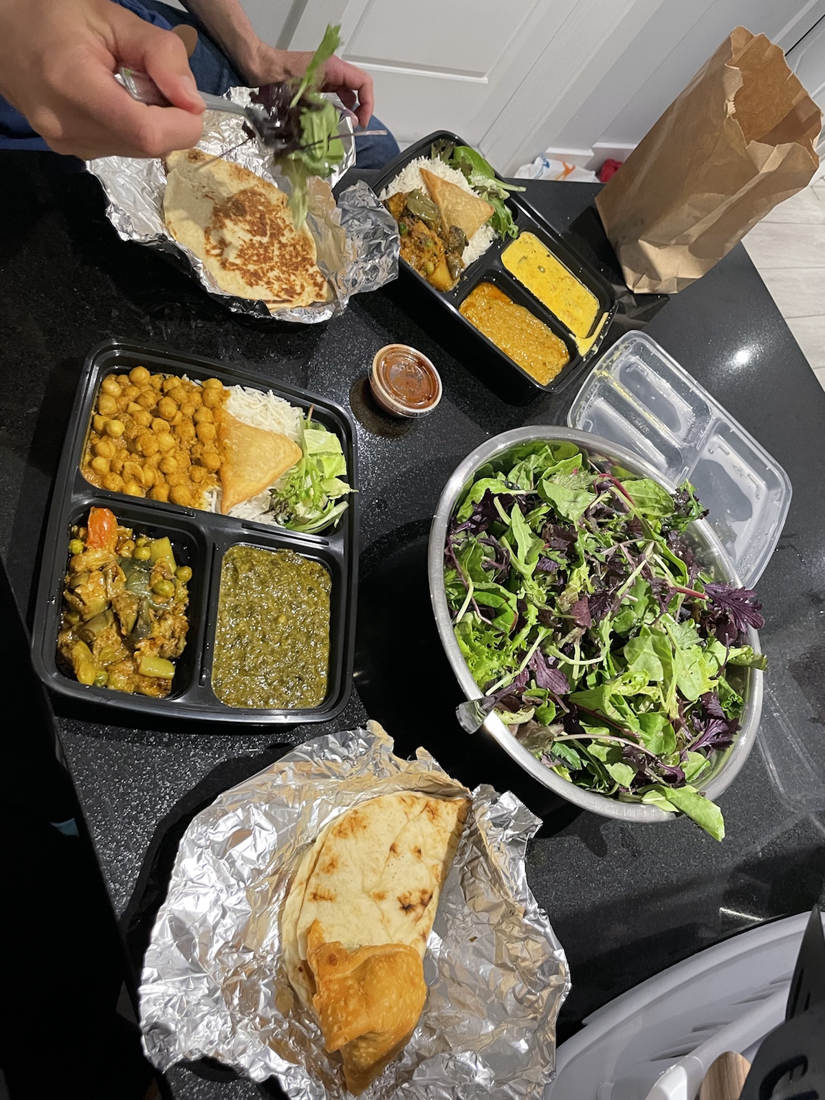 Wir entschlossen, auf dem Rückweg in der Nähe unseres Airbnbs Essen zu holen. Vor einem kleinen indisches Restaurant blieben wir stehen und entschieden uns für dieses. Noch nie habe ich eine derart genervte und unhöfliche Person am der Theke gehabt. Es war so extrem, dass es fast schon wieder lustig war. Mein Vater sagte später, dass sie vielleicht der usp dieses Restaurants war. Sie verdrehte mehrfach genervt die Augen und wollte Chrigis Bestellung zunächat gar nicht mehr aufnehmen. Als wir später die Google Retessionen lasen, wurde unser Eindruck bestätigt – das Essen jedoch. Das Essen. Es war so gut!!